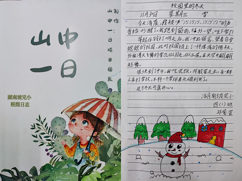 本网讯 一本厚厚的班级日志本寄到了湖南坡完小,湖南太阳慈善助学基金会项目——“山中一日”正式在该校启航,开启它与湖南坡完小四(1)班孩子的故事,让山中孩子们的生活走出大山,让更多人关注孩子精彩的生活。 “山中一日”采用班级日志的形式,鼓励同学们轮流在班级日志上用文字记录日常生活,用照片留存生活图景,用创意展现个人风采。 随着孩子们每天的记录,“山中一日”的班级日志本开始慢慢变得丰富多彩。“老师,我的日记写的是教室的窗台,我把窗台上的花都画在了我的日记本上”“老师,刚刚我来学校时发现校长他们在组装幼儿园新买的三轮车,我要去观察观察,然后写一篇日记”……有了每天写日记的事情,孩子们的生活又充满了新的期待,让他们发现了身边细微的变化,当看到自己精心完成的日记时都特别的满足。 12月20日,孩子们轮流上台,第一次播报自己的日记内容,向项目负责人李晨宇哥哥汇报这段时间的成果,感谢他能给孩子们搭建这样一个展现自己的平台,感受到大山之外关注的目光,帮助他们成长。 山中一日,千里随行!期待跟随着孩子们用清澈的心灵感受生活的阳光,用缤纷的彩笔描绘童年的多样,用丰富的文字诉说山村的故事。
