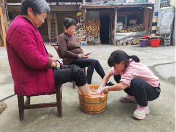 活动一开始,老师先教授学生一定的按摩技巧,以及相关礼貌用语,然后在教师的指导下,给村里的老人按摩、洗脚。此次活动不仅受到了碧溪村村民一致的肯定与赞许,并且孩子在与老人的互动过程中,体会到了亲情所带来的快乐,也明白了家长们的不容易,更是懂得了百善孝为先。(通讯员:李婷 韦彪)