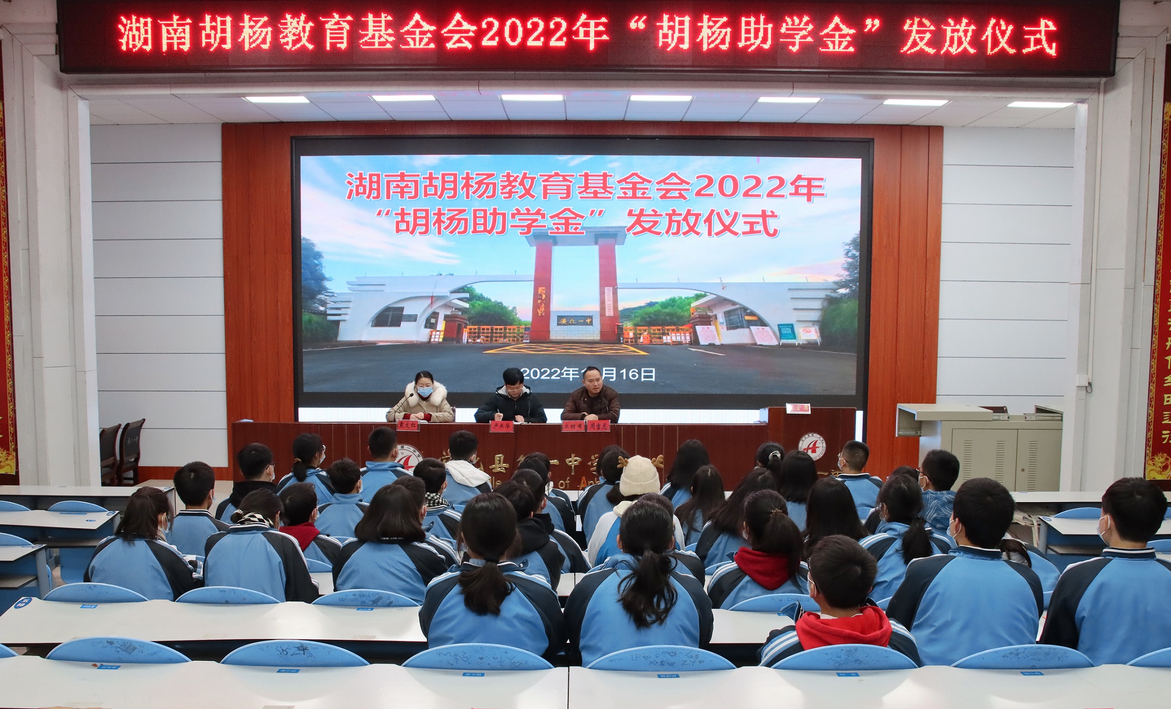 本网讯 12月16日,安化一中湖南胡杨教育基金会2022年“胡杨助学金”发放仪式在培英楼多功能报告厅举行。学校党委委员、副校长卢关华出席,本次活动由团委书记周吉龙主持。 周吉龙希望获得助学金的学生能够不断勉励自己,在今后的学习中更加努力,懂得感恩,将这份爱心传递下去。 教师袁文红宣布助学金名单。 学生代表535班姚能量发言。她衷心感谢胡杨助学金对她物质上的帮助,让她不会因为贫穷放弃梦想,更感谢胡杨教育基金会对她精神上的鼓舞,让她更加懂得了慈善的深层含义,为她指明了人生方向。 卢关华对各位获得助学金的同学表示热烈的祝贺,并对胡杨基金会进行了介绍。他希望同学们学会感恩,对各位爱心人士表示衷心的感谢和崇高的敬意的同时努力学习,以过硬的本领为自己搭建好的平台,将来更好地为国家社会做贡献,以实际行动回报这些爱心人士。同时他勉励同学们学习坚韧不拔的胡杨精神,以顽强的生命力在困难的环境中迎难而上,强大自我。(通讯员 侯文静) |