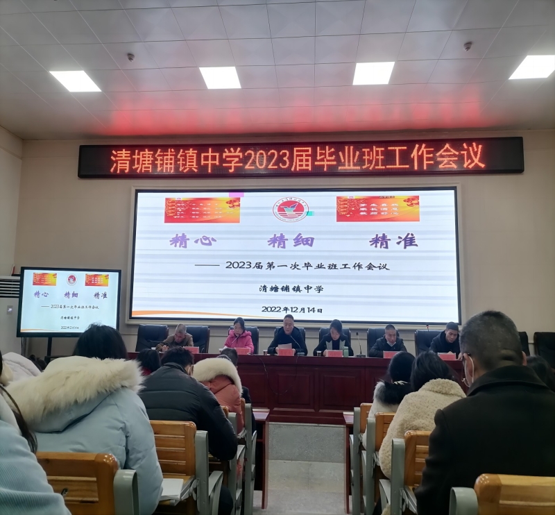 本网讯 12月14日晚,清塘铺镇中学于综合楼多功能报告厅召开2023届第一次毕业班工作会议。本次会议由教导处主任刘丽莉主持,中心校驻校领导邓朝阳主任、学校行政、八九年级班主任、毕业学科任课教师参加会议。 会上,谭宏光校长从2022届中考总结与反思、2023届基本情况、2023届备考工作设想和措施三个方面入手,摆数据,讲事实,为中考备考指明了方向。中心校邓朝阳主任对中考复习提了几点要求:要把握中考方向,明确奋斗目标,制定复习计划,落实集体备课,精心设计课堂。 本次毕业班工作会议,极大地激发了毕业班教师们的工作热情,进一步明确了教学目标和奋斗方向。相信在团队的努力下,毕业班的教育教学质量一定会迈向一个新的台阶。 |