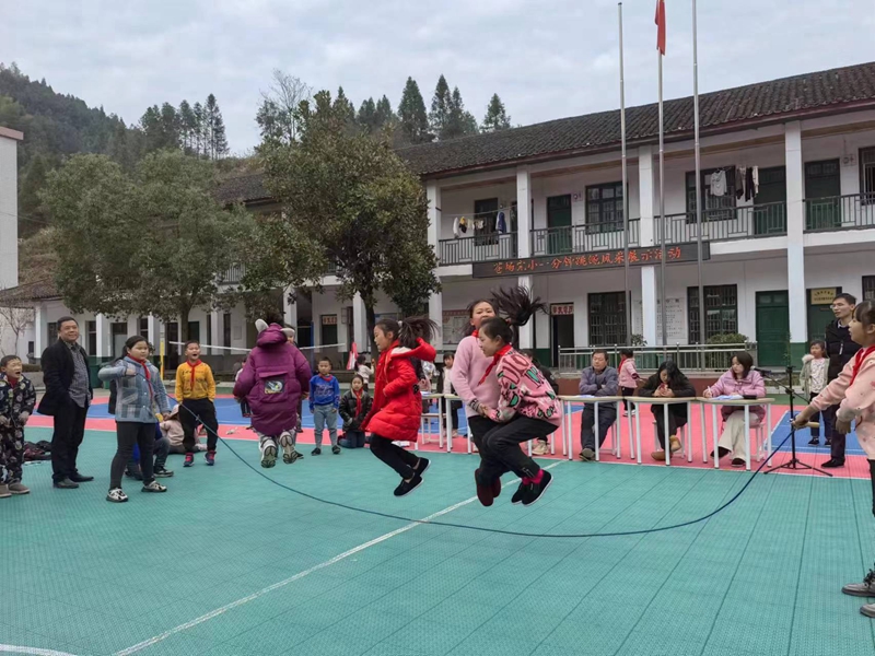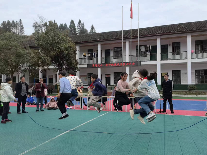 本网讯 12月14日下午,马路镇苍场完小全体师生在学校操坪开展跳绳展示活动。 活动由学校体育教师邓绍文组织实施。每班自由选择一人跳,二人跳,多人跳总计报名十项,宣布开始后,只见绳索翻飞,展示者精神抖擞,啦啦队拍手加油。矫健的身姿在绳间穿梭,侧甩直摇跳、双脚轮换跳、交叉跳、开合跳、勾脚点地跳、两人一跳、集体长绳跳……动作行如流水,令人目不暇接。一根根飞舞的彩绳,构成了校园里最独特的风景线。三年级张可获得单人跳每分钟190个的好成绩。活动结束后,学校教导处为优胜者颁发了纪念品。 该项活动是对落实学校“课间十分钟,欢乐又轻松” 大课间跳绳活动部署安排的检测。自今年下学期开学之日起,全校师生一人一绳,课间操后,只见操坪绳索翻飞,一人跳,二人跳,多人跳,花样跳,精彩纷呈,师生竞比,个个笑颜绽放,笑声串串撒落山间,引诱小鸟也在树间伴舞。邓绍文说:跳绳对学生强身健体效果非常好。班主任刘彩萍说:跳绳凝聚了班级的力量。家长说:孩子到家里都要跳上十分钟。 该校校长邓迪华表示:练好一笔字,读好一本书,跳美一根绳,唱响一首歌(红歌)要成为学校每天常态化的工作。