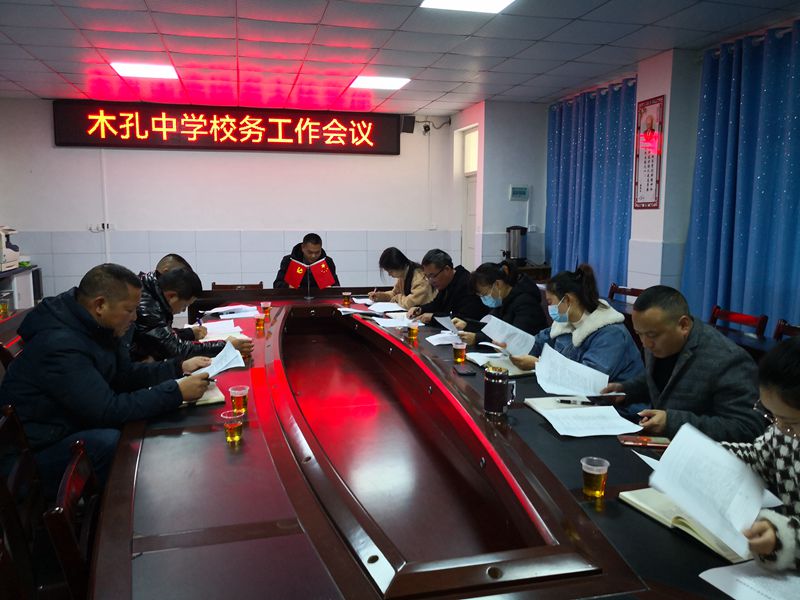本网讯 12月12日,木孔中学为迎接国检与年度考核召开了校务人员专题会议。 会上,校长刘辉就迎检工作进行了安排与部署。刘辉强调了迎接国检学校要落实的控辍劝返、送教上门、资助发放等三个方面的事项,成立了迎检工作小组,要求各部门负责同志对工作查漏补缺并尽快做好迎检预案。 刘辉重点解读了《大福镇中心学校年度工作考核细则》,从“党的建设、教学质量、学校管理、队伍建设”等四个方面做了安排,明确了部门负责人,要求资料整理既要全面扎实又要分门别类并要装订成册。 本次会议旨在为迎检统一思想,进一步压实部门责任,提高大家的迎检意识,同时为期末工作的开展做好部署。