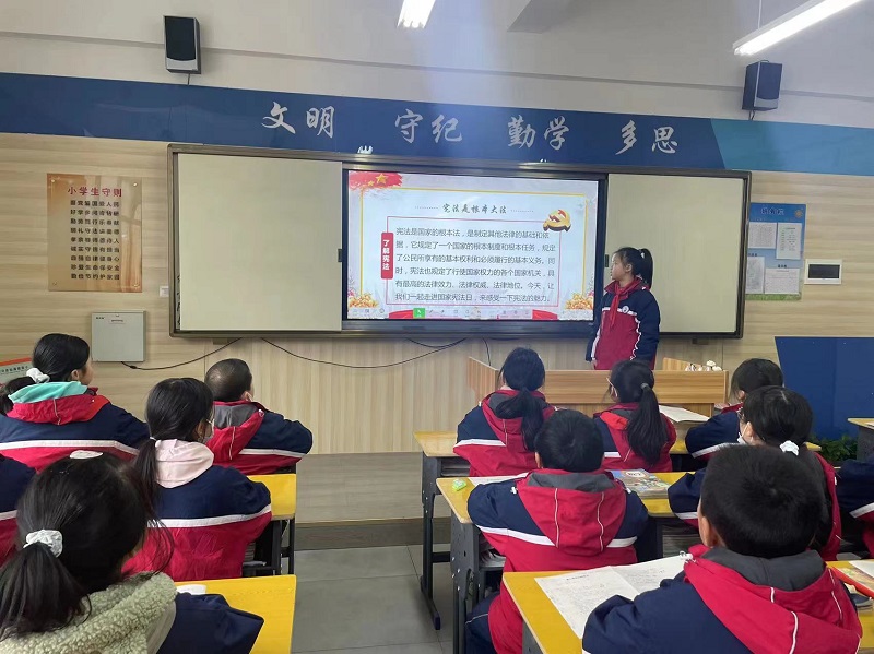 本网讯 12月7日,仙溪镇完小开展“学习宪法 做合格小公民”主题班会,全校27个班级全部参加活动。 此次主题班队活动各班精心组织,巧妙设计了班会的内容和形式。有的班级利用多媒体设备制作了宪法知识宣传课件,回顾了新中国的立法史,了解了中国宪法的变迁,向同学们普及了宪法知识;有的班级通过小小宣传员收集了党的二十大精神相关内容,跟同学们进行宣传交流;有的班级还通过知识抢答、观看法制宣传片、学唱《宪法伴我们成长》歌曲、演情景剧等形式扩大宪法知识宣传的力度。 通过此次活动的开展,同学们深刻了解了宪法的有关知识,弘扬了宪法精神,有效预防学生违法犯罪,促进了学生的健康成长。(通讯员 周艳红)