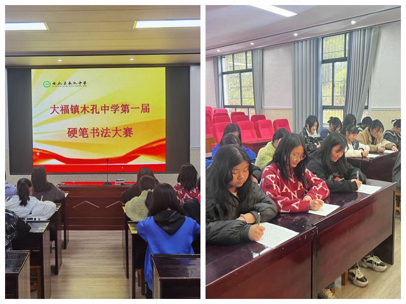 本网讯 12月6日,木孔中学举行了第一届硬笔书法比赛。 比赛在多媒体教室进行,参赛选手均来自各班初赛后推先的优秀代表,共计70余人。比赛书写内容为梁启超先生的《少年中国说》。随着评委的一声“开始”,同学们个个腰直腿正,按照“一寸距、二指圆、三指齐”的硬笔书法要求立马进入了紧张的比赛。在规定的时间内选手们全部上交了比赛作品,经评委们一致评定,田婵红与李欣怡两位同学荣获一等奖。 据悉,本次比赛旨在激发同学们对硬笔书法的兴趣,养成良好的书写习惯,提供展示自我的舞台,发挥书法校本课程的育人功能,以促进同学们的全面发展。
