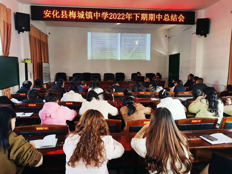 本网讯 11月25日下午,梅城镇中学全体教职工齐聚会议室,举行2022年下学期期中总结大会。 副校长戴彪立足该校半学期来的教学与管理,作了全面总结与回顾,对后半学期的教学,提出了具体的要求。 教务处主任蒋三佰就期中教学常规检查做了详细总结,对部分优秀的日常工作进行了展示。他肯定了前段时间教师在备课、听评课、作业布置与批改等环节中取得的成绩,大多数教师能根据所任学科教材及所教班级实际,认真制定好教学计划,安排好教学进度,搜集编制个性化辅导资料,保证了教学常规工作的完整性、高质量,对存在的不足提出了改进的方向与措施,为老师们进一步完善常规工作指明了方向。 教科室主任高少华对上周举行的新进教师教学比武进行了总结并对近段时间教研活动作了安排;工会主席胡盛云就教职工体检和教代会筹备工作进行了安排;办公室主任蒋志球就出勤工作和师生医保电子凭证激活工作做了具体的安排。 校长喻选民对当前重点工作进行了部署和强调,希望全体教师一起努力,共同提升思想水平和专业水平,共同开创教育的幸福和幸福的教育。