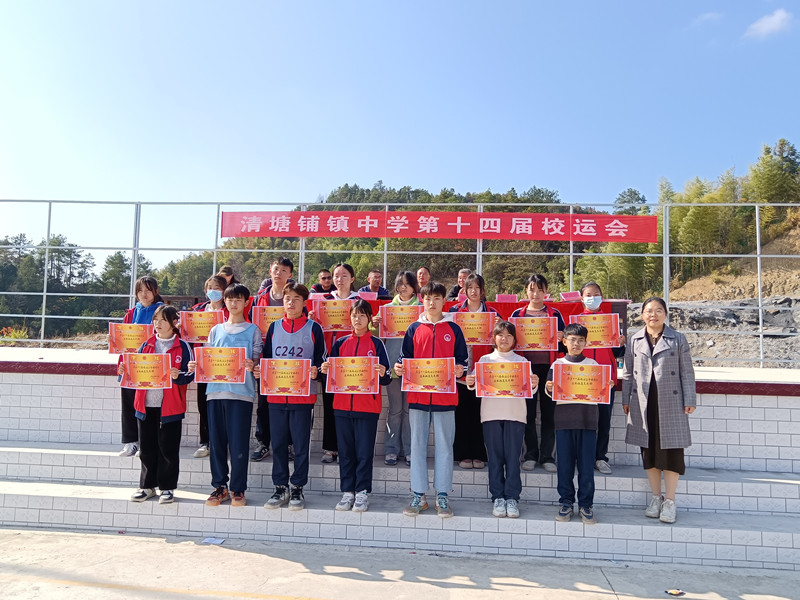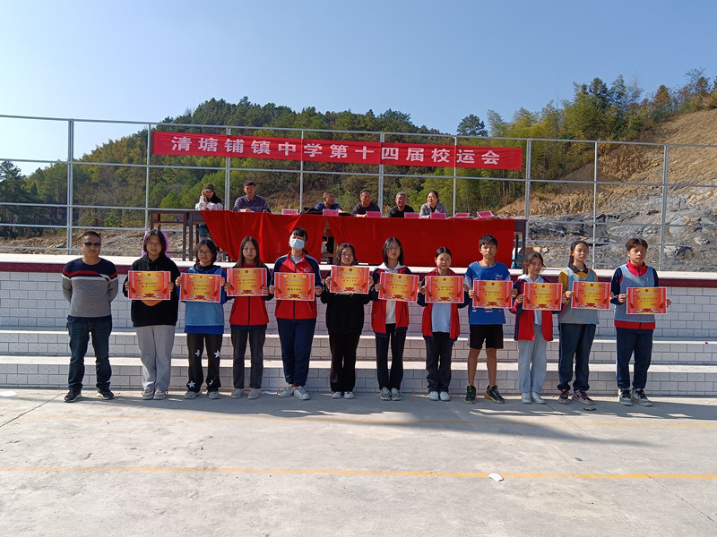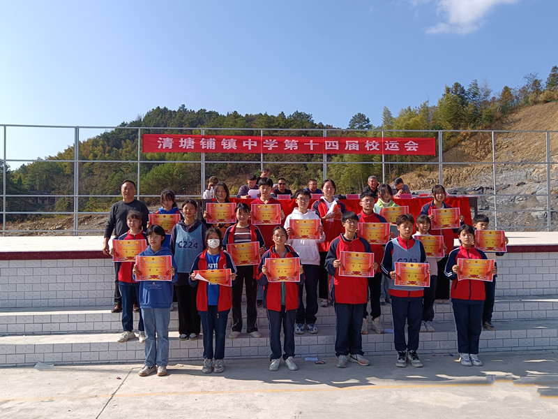 本网讯 11月25日下午,清塘铺镇中学第十四届校运会在圆满完成既定议程和比赛任务后举行闭幕式。全体行政人员、运动员、裁判员出席闭幕会。 三天时间,来自各年级的一千三百多名师生在18个项目的比赛中展开了激烈角逐。在全体运动员、裁判员和大会工作人员的努力下,学生竞赛项目井然有序、高潮迭起,教师项目“快乐保龄球”妙趣横生、精彩纷呈。所有运动健儿顽强拼搏,发扬更快、更高、更强的体育精神,赛出了风格,赛出了水平,充分展现了清中人踔厉奋发、勇毅前行的精神风貌。 校长谭宏光向取得优异成绩的班级和个人表示热烈祝贺,向全体运动员、裁判员和大会工作人员表示衷心的感谢。他激励全体师要生进一步弘扬体育风尚,培养文明健康的生活方式,在运动中强身健体、陶冶情操,努力提高身体素质和健康水平,发扬奥运精神,以更加饱满的热情,投入学习工作生活之中,在人生的赛道上奋力跑出更佳成绩。 总裁判长宣布比赛成绩后,谭宏光为团体总分前6名颁奖,副校长吴雄为集体项目前6名、单项个人前3名颁奖,政教处周伟宏主任为体育道德风尚奖颁奖,教导处刘丽莉主任为通讯报道奖颁奖。该校第十四届校运会在热烈的欢呼声中顺利落下帷幕。
