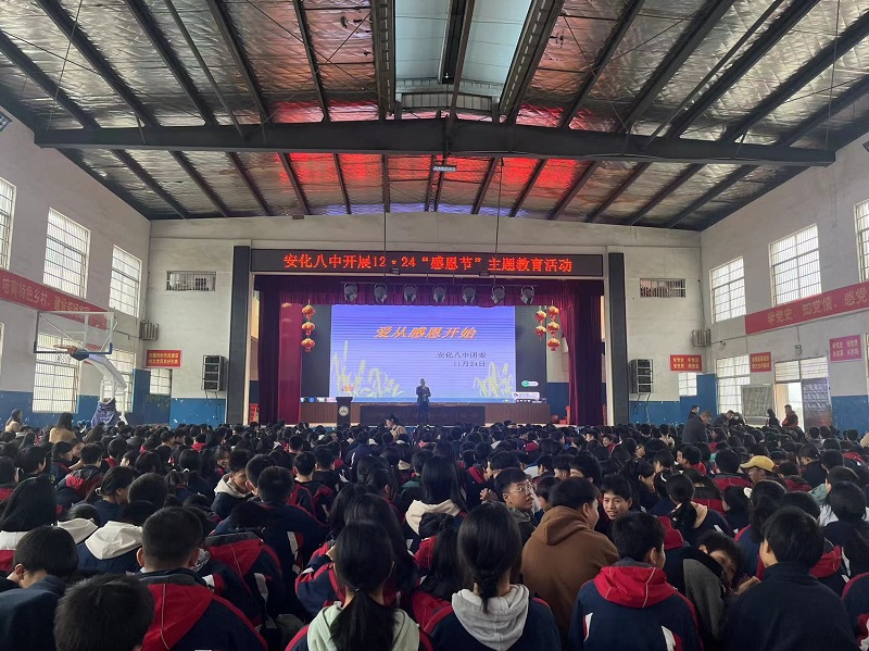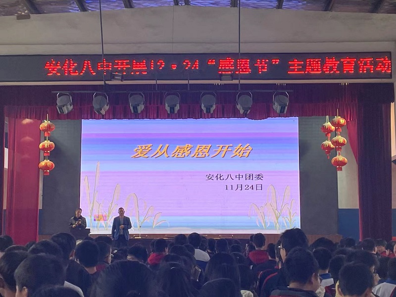 本网讯 11月24日清晨6时55分,安化八中全校师生开展了“爱从感恩开始”为主题的感恩节主题教育活动。 从一颗“种子”到长大成人父母为孩子们所做的励志视频播放,让观看的孩子们在不经意间红了眼眶,透露着他们对父母的心疼与爱意;老师,是辛勤的园丁,陪伴孩子们的日日夜夜,他们都有铭记于心,在感恩节这天,孩子们对着自己的老师表达感谢,大声地说出“老师,您辛苦了!谢谢有您!”活动在歌曲“感恩的心”中接近了尾声…… 活动的开展,让全体同学学会了感恩家人、感恩老师,让感恩的种子能够撒播在孩子们的心间对身边给予自己关爱的人心存感激。(通讯员 方学文)