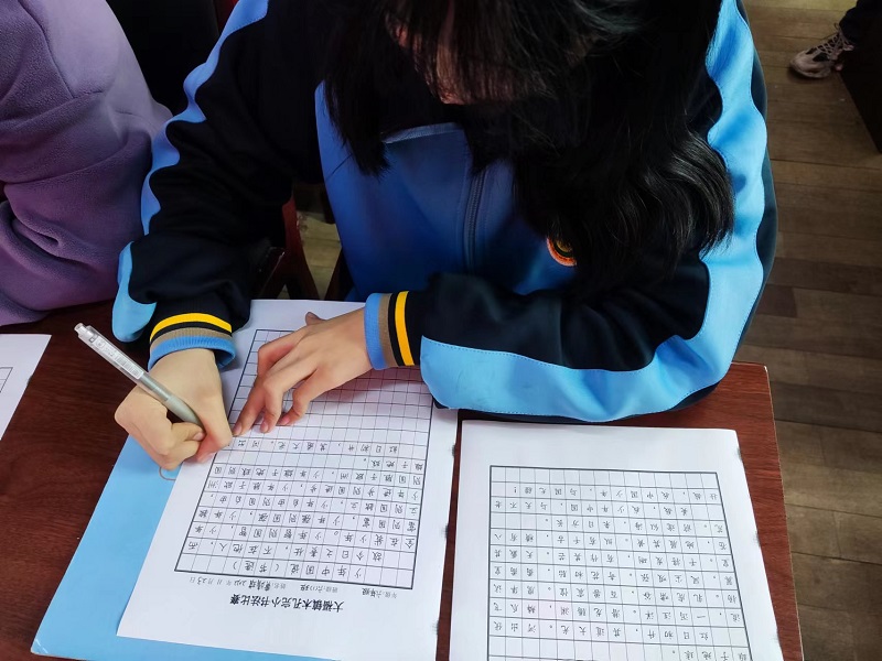 本网讯 11月23日中午,大福镇木孔完小举行了《少年中国说》硬笔书法比赛复赛,各班选送三名初赛优胜学生参赛。 赛事伊始,全体同学及时提笔,认真书写。神情专注,一撇一捺,笔势开阔,起转锋回,字字溢香,孩子们的书写,有的笔画分明、大小相称,有的笔力刚劲、结构严谨;有的字形秀丽、柔和美观。在无声处浸润经典,充分展示了书法教学百花齐放的成果,同学们态度认真,都希望自己的作品能够在众多作品中脱颖而出。 硬笔书法比赛的开展点燃了该校学生积极参与书法练习的星火,为做一个爱中华经典文学,喜优秀传统文化,知国学文字之美的新时代优秀少年而努力。(通讯员:陈方杰)