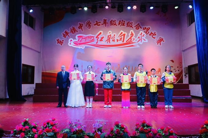 本网讯 11月18日下午,东坪镇中学举行了“红船向未来”红色经典歌曲合唱比赛。七年级16个班800多名学生参加了本次比赛。 “唱出我们的风采,唱出我们对党的赞美,唱出我们对革命先烈的深情缅怀,唱出我们对祖国的一片深情。”在学校党支部书记、校长刘志慧热情洋溢的讲话中,拉开了比赛的序幕。 《红船向未来》《不忘初心》《国家》《万泉河水清又清》《听妈妈讲那过去的事情》等一首首经典红歌在赛场上回响,激荡人心。比赛中,同学们着装整齐、精神饱满,放开歌喉、尽情展演,把自己对党和祖国的热爱、对远大理想的追求融入美妙的歌声中。 中场评委商议阶段,特邀表演嘉宾熊健老师一首萨克斯独奏《走过咖啡屋》将同学们的激情点燃,获得了听众一阵又一阵雷鸣般的掌声。更值得一提的是,湖南城市学院的音乐实习老师们表演的《灯火里的中国》作为本次活动的压轴,美妙的和声,深情的演唱,征服了在场的所有听众,掌声、欢呼声将现场的气氛推向了最高潮。 经过激烈的角逐,2216班、2213班、2203班等七个班级节目获得此次合唱比赛的一等奖。 在响彻室内球场的校歌声中,本次活动画上了圆满的句号。