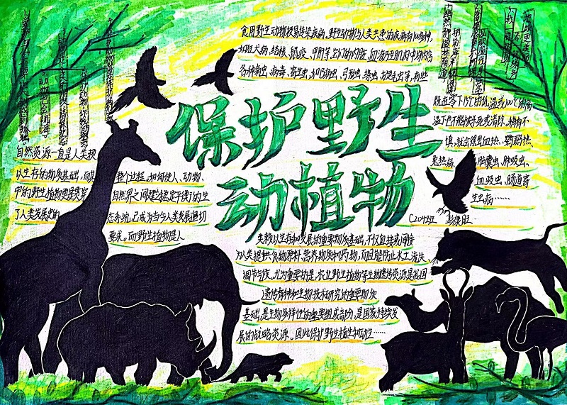 活动期间,各班积极参与,以丰富多彩、图文并茂的形式在手抄报上展示了绿色环保、爱护动物等宣传内容,以优美的文字和鲜艳的色彩渲染了绿色发展、保护动植物的重要性。本次活动共收取68份手抄报作品,41份作品获奖,其中6份作品获一等奖,15份作品获二等奖,20份作品获三等奖。