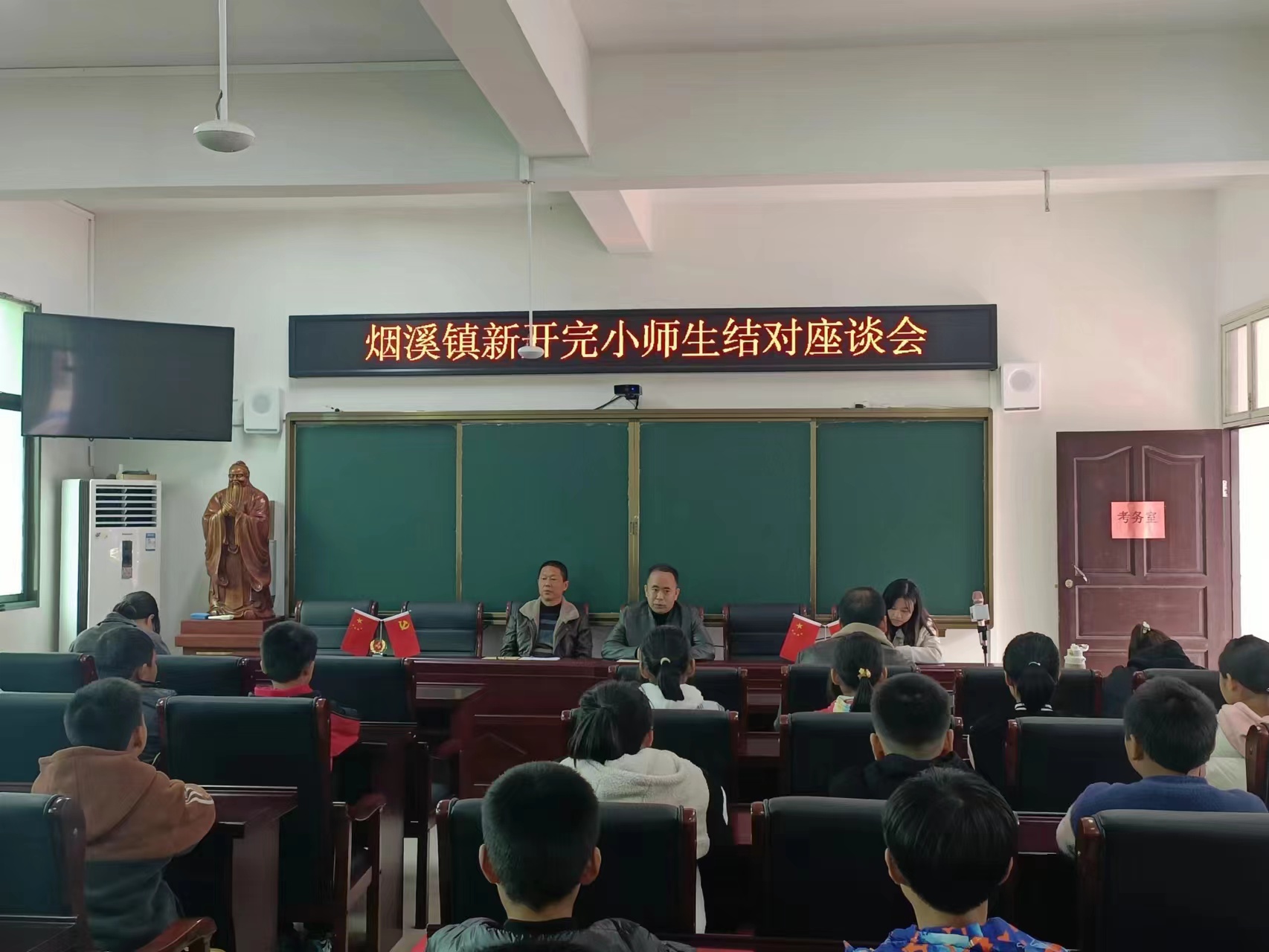 本网讯 11月17日中午,烟溪镇新开完小召开师生结对座谈会。烟溪镇新开完小全体行政、六年级班主任及25名学生代表参加。本次座谈会由教导处胡思雨主持。