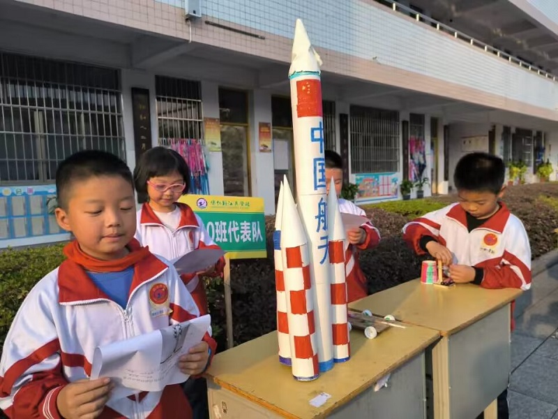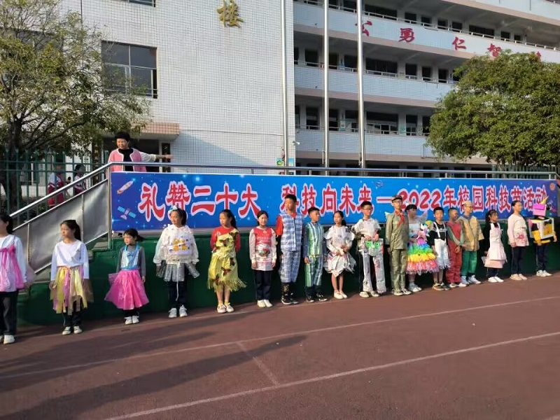 本网讯 11月8日下午,江英学校小学部以“礼赞二十大,科技向未来”为主题,在大操场上举行了2022年校园科技节活动。 小学部校长刘艳向到校参加科技节活动的各级领导、老师和家长以及同学们表示了热烈的欢迎,感谢他们一直以来对校园科普教育工作的关心与支持。她号召全校同学积极参与科技节的各项活动,从小爱科学、学科学,提高科学素质,让校园充满创新与活力,并宣布活动开幕。 伴随着阵阵欢呼声,20多名智能机器人和身着环保服装的环保爱护者吸引了同学们的目光。他们摆弄着各种动作走上了舞台,并与观众互动。尤其是那些进行大国重器模型、环保发电项目的展示,激起了同学们强烈的好奇心和无限思考。 各年级的科学老师和学生在舞台后坪排开了“一条长龙”,进行各自的科技展示。在“空气大炮”展演中,只见实验员用力压迫有孔的纸箱,各种形状的空气炮就从纸箱中弹射出去,让同学们直观形象地了解了压缩气体形成冲击波的原理。利用干冰和温水,加入一些洗衣液或洗手液,就能造出一个“冰雪世界”!同学们不由得发出阵阵感叹。借助橡皮筋的弹力,能让一架架“弹射飞机”在空中盘旋许久不落地。从水杯塔中五颜六色的液体变化,大家了解了“虹吸现象”。只需要小苏打和白醋混合,就能让空瓶自动吹出一个气球来!“扎不破的水袋”和“神奇的水”分别让同学们了解了水的表面张力和空气压强原理。 用废弃饮料瓶制成的水火箭通过压缩空气把水从火箭尾部的喷嘴向下高速喷出。在反作用下,水火箭快速上升,加速度、惯性滑翔在空中飞行。这个过程跟导弹、运载火箭的发射升空及回收的过程相似,基本原理一样,极大地激发了同学们探索航天科技奥秘的热情。 利用生活中随处可见的物品就能做出神奇的科学实验,同学们纷纷感叹:生活中处处有科学!在展演结束后,各年级还进行了学生对学生打分,评选优秀作品。 本次活动为礼赞二十大奉上了一份美好的礼物,也营造了孩子们爱科学、学科学、用科学的良好氛围,从而培养了同学们“敢于探索、勇于创新”的科学精神,为今后培养更多的能工巧匠、大国工匠打下了坚实基础。