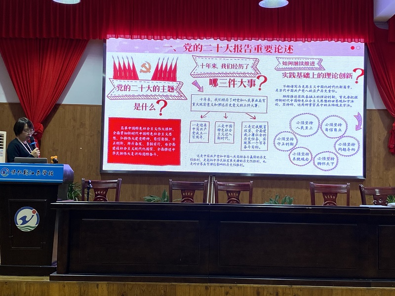 本网讯 11月8日,江英学校小学部召开十一月教师例会。会议在为你朗读、成长论坛、部门工作、校长专栏等常规环节中增设了二十大专题学习培训。 为你朗读环节,教科室倡导老师们在省52阅读平台阅读王三阳老师的《做幸福的老师》,积极优化教师生存状态,提升教师生命质量,做幸福的老师,做幸福的教育。“同读一本书,书香润课堂”已成为江英教师成长的常态。成长论坛中,陈超辉老师的班主任经验分享《让班级成为孩子生命中的光》感动人心,师生之间那些温暖有爱的点点滴滴,折射出师者的睿智与无私。“宽容之光、理解之光、自信之光、幸福之光”每道光芒背后都是她与学生共成长的乐章。青年教师王俊芳分享了她的成长感悟,“靠近光、追随光、成为光、散发光。让学生因我的存在而温暖。”成为她的教育宣言。《心有课标,成长有道》,数学学科长周杨老师分享了她的学习心得。