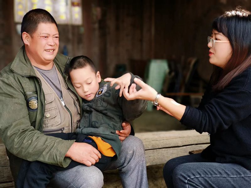 送教对象,王永康,10岁,脑瘫,多重残疾,行动不便,没有语言表达能力。送教之前,陶晓兰一行4人根据王永康的实际情况,制定了特殊的教案。陶晓兰为孩子送去营养品,和王永康的爷爷奶奶亲切沟通交流,细细问孩子的近况,并根据孩子的认知能力,开展了水果认知教学。