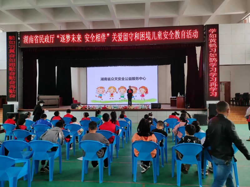 本网讯 11月5日下午2点,柘溪镇完小进行关爱留守和困境儿童“筑梦未来,安全相伴”系列活动。安化县民政局夏洁琼、湖南省众天公益服务中心讲师彭天冰、柘溪镇中心校校长刘良刚、柘溪镇完小行政一班及受助留守、困境儿童30人参加此次活动。