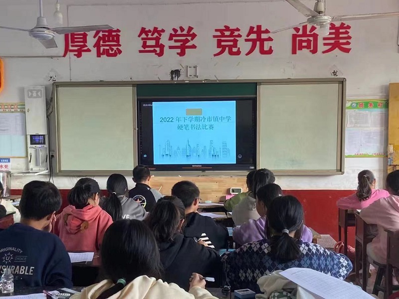 本网讯11月1日下午,冷市镇中学开展了硬笔书法比赛,全校13个班级参加此次比赛。
