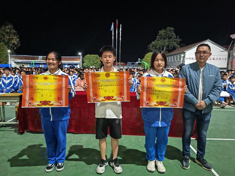 本网讯 10月31日晚,烟溪镇中学第六届秋季综合运动会落下帷幕。 本次运动会历时两天半,比赛项目多样,既有展现个人特长的100米、200米、400米、800米、1500米、跳高、跳远、铅球、垒球等项目,也有体现合作精神的4×100、4×400接力赛、跳长绳、拔河、篮球等集体项目。运动员们在场上龙腾虎跃、奋力争先,他们努力拼搏,不断进取,超越自我。 闭幕式上,本次运动会总裁判长尹文俊宣读比赛成绩,183班、187班、191班分列各团体总分第一名,刘瑞鑫等三名运动员被评为优秀运动员。该校校长杨洋,党支部书记、副校长刘开颜为获奖班级与学生颁奖。 刘开颜宣布烟溪镇中学第六届秋季综合运动会闭幕。在全校师生的掌声中,本次运动会圆满结束。