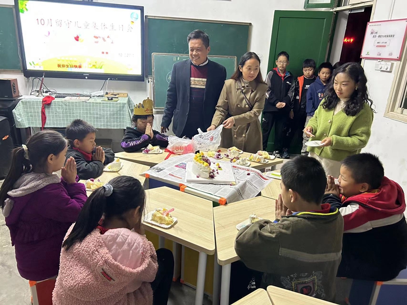 本网讯 10月31日晚六点,马路镇苍场完小在芭莎教室为十月生日的孩子举办集体生日会。 生日会由教导主任邓金连主持。当生日蜡烛点亮时,芭莎教室响起了温馨的生日祝福歌,到场的该校校长、教导主任、德育专干,班主任、家长代表纷纷为孩子们送上了美丽的祝福。六位十月生日的孩子双手合十,默默许愿,六年级学生张雨萱在许愿时流下了激动的泪水。在外务工的家长在家校联系群中感激的说:生日会的举办,让孩子们真切的感受到了学校大家庭的温暖,更会让孩子学会关心别人。据悉,这是该校第二次为孩子集体举办生日会,并且以后会成为常态化的工作。(通讯员:贺昭)