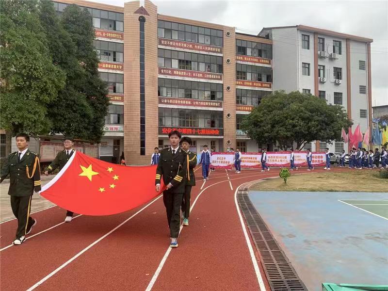 本网讯 10月29日下午,安化五中热闹非凡。近700名师生齐聚运动场,隆重举行了第四十七届运动会开幕式。 运动场上,各班方阵队排着整齐的队伍、穿上统一的校服,师生们个个精神饱满,充满了拼搏的活力与必胜的自信。紧随其后的是庄严肃穆的升旗仪式。 升旗仪式后,开始节目表演,各班同学和专业队小组各自表演了节目,节目凸显现代时尚气息,一个个精彩的表演赢得了全场一阵阵的掌声和欢呼声。 学校党支部书记、校长龚加宜致开幕词,他对出席开幕式活动的领导嘉宾、支持学校发展的校友和社会爱心人士表示衷心感谢,强调举办运动会对于全校师生的重要意义以及努力办好运动会的决心。党支部委员、副校长刘飞舞宣布比赛项目,党支部委员刘耀平宣读运动会纪律要求,工会主席陈爱梅宣布精神文明代表队评比方案。运动员代表刘浩庭宣誓,裁判员代表团委书记黄诗也进行宣誓。烟溪镇党委委员、人大主席张辉宣布安化五中第四十七届运动会开幕。 至此,本次运动会开幕式结束,运动员,裁判员退场。大家期待的比赛正式拉开序幕,健儿们挥洒活力与汗水的征途就此启程,一场激烈的博弈也即将开始。(通讯员 夏媛 刘飞舞)