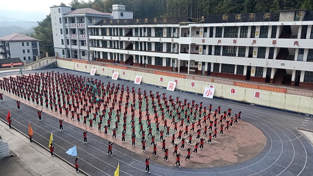 本网讯 10月26日下午,乐安镇完小举行2022年大课间活动验收展演,县教育局基教股黄志红、陈方元一行三人在中心学校蒋吉贵等人的陪同下观看了汇报活动。 运动员进行曲响起,各班在教室走廊外排好队伍,在班旗的带领下,同学们踏着整齐的步伐来到操场上,“报数、向左转、向右转、向后转”一气呵成,口号响亮,精气神满满。 韵律操《弟子规》、第三套广播体操、扇子操《霸王别姬》三个项目的展演,同学们动作整齐划一,刚柔并济,踩着音乐的节拍,扇子打开、收拢,老师们的参与,带来了视觉上享受,充分地展现了全体师生的良好精神风貌。