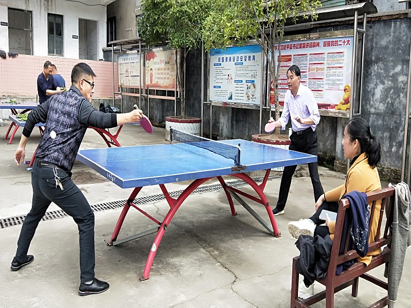 本网讯 10月21日,龙塘镇完小开展教师趣味运动会。旨在促进教师身心健康,释放工作压力,提升团队凝聚力,该校在继学生运动会之后,组织全体教师开展了一场丰富多彩的活动。活动由学校教务主任袁赞盛主持,全体工作人员参加。 乒乓球台旁,老师们全神贯注,白色的乒乓球在快乐地蹦来跳去;羽毛球场,老师们不断地调整姿势,挥舞着球拍,羽毛球在空中翩翩起舞;田径场上,参加短跑比赛的老师你追我赶;两人三足赛场,老师们配合默契;多人绕杆接力赛,成了一道亮丽的风景;象棋室,老师们杀得难解难分;食堂里,为包饺子比赛喊加油的声音一浪高过一浪;厨房里,擂茶阵阵飘香;喝彩声、欢呼声,久久在校园回荡。