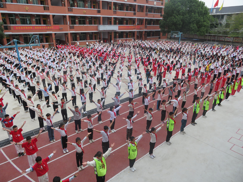 随着《运动员进行曲》的响起,学生们踏着整齐统一的步伐迈入操场。活动共分为入场列队、加油操、《弟子规》韵律操、《锄禾日当午》放松操、方阵跑操、退场六个项目,充分展示了该校学生的精神面貌与运动风采。