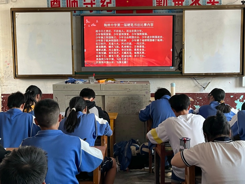 本网讯 10月20日,杨林中学举行了第一届硬笔书法比赛。 本次活动学生全员参与,比赛内容节选自《少年中国说》。比赛中,同学们一丝不苟地伏案书写,一笔一画体现出仔细与认真,横竖撇捺、起笔收笔,将所学本事都展现得淋漓尽致。一张张纸上呈现出一个个清秀工整、优美流畅的字迹,每个班级内都充满着浓郁的墨香味儿。 本次书法比赛活动,为该校学生提供了一个展示硬笔书法艺术的平台,涌现出了许多的“小小书法家”。丰富了学生的校园生活,培养了学生的书法兴趣和爱好,增强学生写规范字、用规范字的意识,促进学生良好书写习惯的养成,让更多的孩子乐于练书法、写好字,更好地传承中华文化。