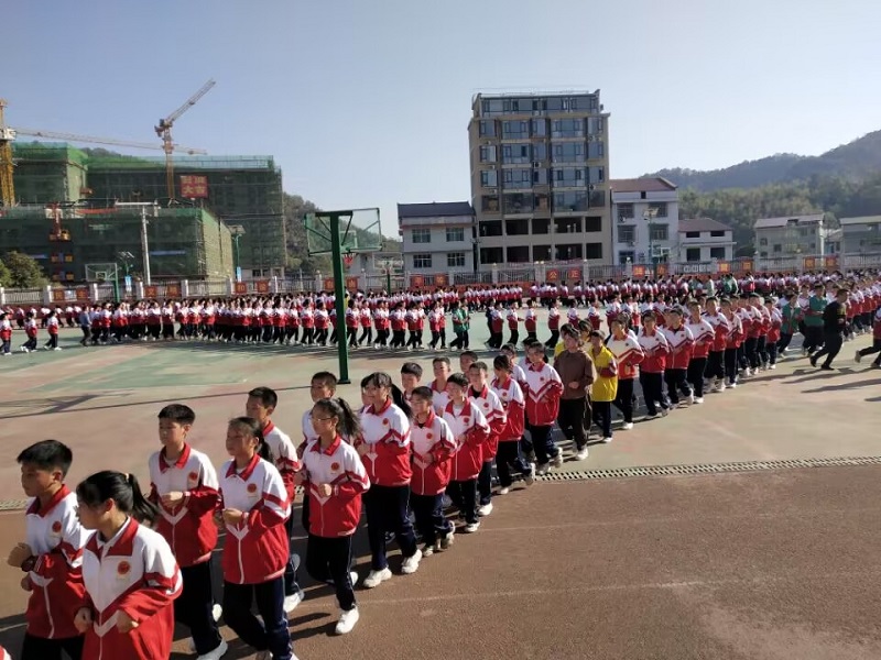 操场上,同学们排起了整齐划一的律动操队形。此时,广播里传来了“翻开历史的书卷,从‘愿以吾辈之青春,守护盛世之中华’的披荆斩棘,到‘请党放心,强国有我’的铿锵誓言,一代代青年滚烫人生的焰火,始终在燃烧!”同学们齐声高呼:“我们是江英学子!我们是中国青年!青春当燃,有我在场!”随即《奔跑的青春》、《一起向未来》响起,同学们伴随着韵律,挥动手臂,按照“青春无需彩排,拼搏奋斗趁现在,心怀梦想致未来!”和“欢呼二十大,永远跟党走!青春生生不息,奋斗未有穷期。中国梦的未来,属于青年;时代的荣光,属于青年!以青春之我,奋斗之我,续写时代华章。青春当燃,未来我来!” 的话外音,动作有力,挥洒自如,并齐声高呼:“青春当燃,未来我来!”……站在场外的县局大课操检查组和学校董事室、校务室和督导室的领导和全体老师全神贯注,赞叹不已。 据学校责任人介绍,为响应“双减”政策号召,促进学生德智体美劳全面发展,增强学生体质,学校积极落实“阳光大课间”跑操活动。课间跑操是学生阳光体育运动的有效载体,更是展现学生精神风貌的窗口。为逐步形成强身健体,阳光运动的校园氛围,学校开学初就召开了班主任会议,制定跑操方案、流程。要求体育组负责落实执行,体育老师负责指挥,班主任负责跟操,以确保学生的纪律和安全。正如古希腊有这样一段话:“你想变得健康吗?那就跑步吧!你想变得聪明吗?那就跑步吧!你想变得美丽吗?那就跑步吧!”阳光跑操,助推“双减”。