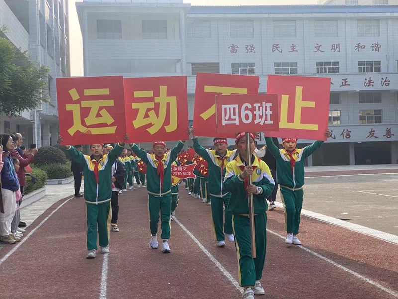 本网讯 10月18日,江南镇完小第三十七届运动会隆重开幕。 上午8时20分,威武雄壮的运动员进行曲响起,国旗和队旗方阵、彩旗方阵、鼓号队方阵、宣传标语方阵、裁判员方阵、志愿者方阵以及各班方阵迈着矫健的步伐,踏着奋进的旋律,依次经过主席台,“生命不息,运动不止”“喜迎二十大,争做好少年”“我运动,我健康”等整齐响亮的呼号声响彻云霄。各代表队风采多样,特色迥异,秀出了活力,秀出了激情,掌声如雷,经久不息。开幕式举行了升旗仪式;工会主席刘红军致开幕词;裁判员和运动员代表宣誓;校长贺剑伟宣布开幕。 据了解,本次运动会主题为“学冠军精神,向二十大献礼”。运动会分六个组别,设置篮球、田径、集体项目三个大项,60米、800米、跳高等十五个小项,参赛运动员693名,历时4天。(通讯员 刘红军)