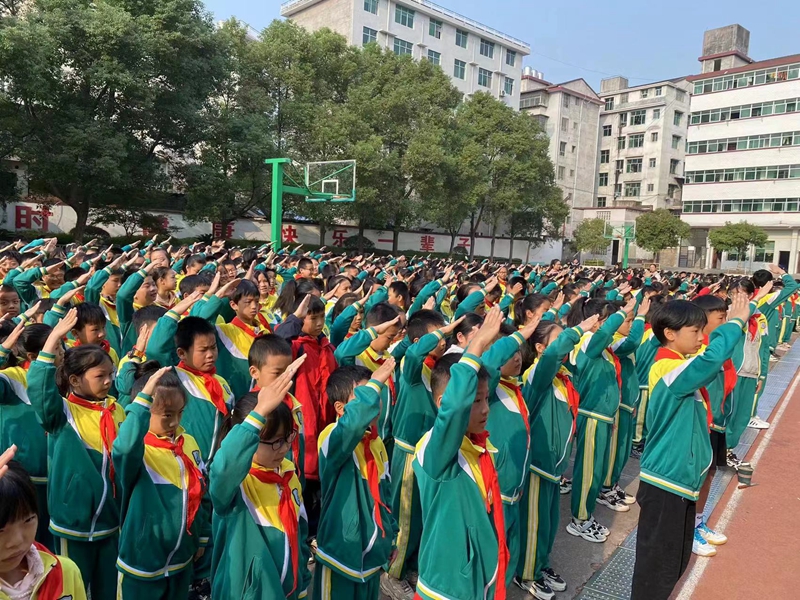 本网讯 10月17日,江南镇完小举行“致敬二十大 向国旗敬礼”主题升旗活动,1800余名师生参加。 上午8时38分,伴随着庄严的中华人民共和国国歌,鲜艳的五星红旗冉冉升起,少先队员行队礼,其他人行注目礼,自豪、崇敬之情溢于言表。李修平、王瑾萱、封瑞昕等同学的演讲更是将活动推向了高潮。他们列举了改革开放尤其是十八大以来,我国在各个领域所收获的重大成果,号召全体师生努力学习,积极向上,不辜负这个伟大的时代。演讲者们慷慨激昂的演讲,点燃了师生滚烫的爱国热情和浓厚的家国情怀。 学校政教主任罗武军在活动中强调:全体师生要清醒地认识到“行百里者半九十”的考验,要扣好扣子,学好知识,唱响爱国、爱家、立志成才主旋律。(通讯员 刘红军)