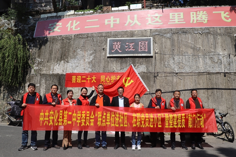 本网讯 近日,安化二中组织在职党员和教师志愿者代表组成的志愿服务小组,来到县城北区黄合社区萸江园小区开展整建提质“敲门行动”。