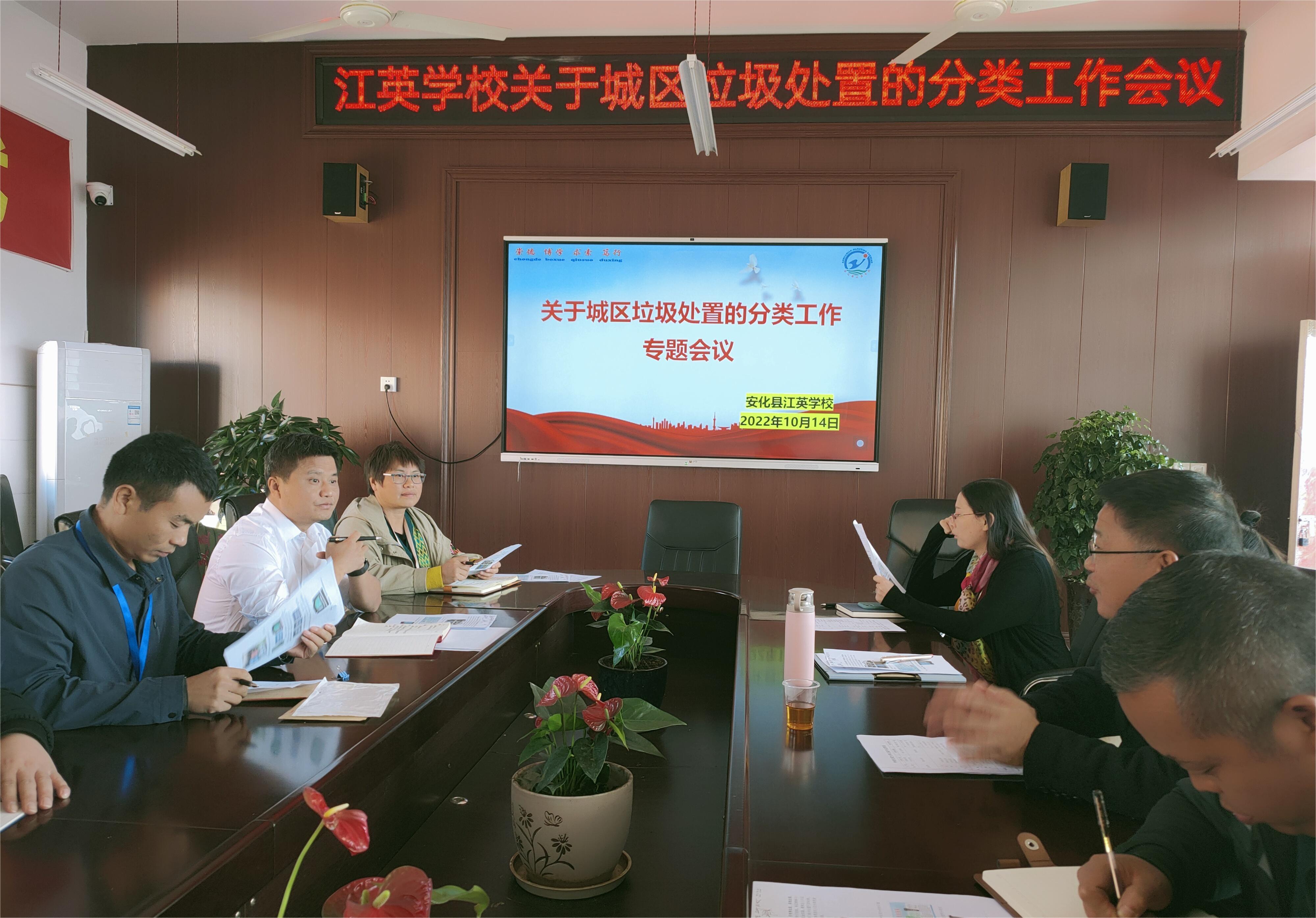 本网讯 10月14日上午,江英学校在初中部教学楼六楼会议室组织召开了“垃圾分类,我们在行动”——关于城区垃圾处置的分类工作专题会议。学校校长姚喜临、党支部书记谢豪、高中部校长刘腊生、初中部校长戴思妹和小学部校长刘艳,以及十多名行政管理人员及主要骨干教师参加了会议。 姚喜临着重强调了实行垃圾分类的意义,不仅关系到人民群众的生活环境,而且关系到节约使用资源,更体现了一个国家的社会文明水平。因此,提升全体师生的垃圾分类意识,做好垃圾分类的普及工作,在全校范围内广泛开展“垃圾分类,我们在行动”、“践行垃圾分类,共建绿色校园”等系列活动意义重大。并明确指出,学校要以《垃圾分类,从我做起》为主题,开展国旗下的讲话,召开主题班会,呼吁同学们从身边小事做起,养成垃圾分类的良好习惯,做好垃圾分类的“小宣传员”,为营造干净、整洁美好的校园环境共同努力。低年级的小朋友们可以结合自己日常生活中的观察和学到的垃圾分类知识,发挥想象力,以五彩斑斓的画笔,在画纸上画出对垃圾分类环保理念的认识。中高年级的同学们可以用精心制作的手抄报,通过形式多样化来达到宣传推广垃圾分类的效果,进而推动全体师生认真践行垃圾分类的理念和行动,从而把学校“创文巩卫”工作跃上一个新的台阶。 |