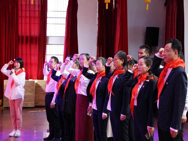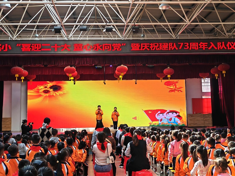 本网讯 10月13日下午,东坪镇城南完小少先队大队部开展了主题为“喜迎二十大 童心永向党”暨庆祝建队73周年入队仪式。本次活动共有126名新队员加入少先队组织。该校全体党员参加了此次活动。 活动伊始,校长张密田为本次活动致辞,他勉励新队员们在红领巾的激励下好好学习,为祖国贡献自己的力量。全体党员重温入党誓词。 伴随着雄壮的少先队出旗曲,新队员入队仪式拉开序幕。全体少先队员高声齐唱《中国少年先锋队队歌》。该校少先队辅导员夏柳宣读了新队员入队名单,她要求新队员热爱祖国、热爱红领巾、努力学习。该校党员和老队员代表为新队员佩戴红领巾,带领新队员举起右手在队旗下庄严宣誓,将活动推向高潮。接着新老队员代表、少先队辅导员依次发表了生动的讲话。活动在呼号声中圆满结束。 此次活动,增强了少先队员的责任感、自豪感、仪式感,使少先队员明确了肩负的光荣使命。