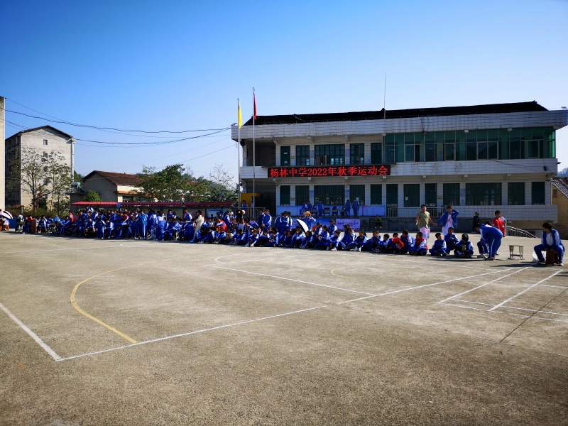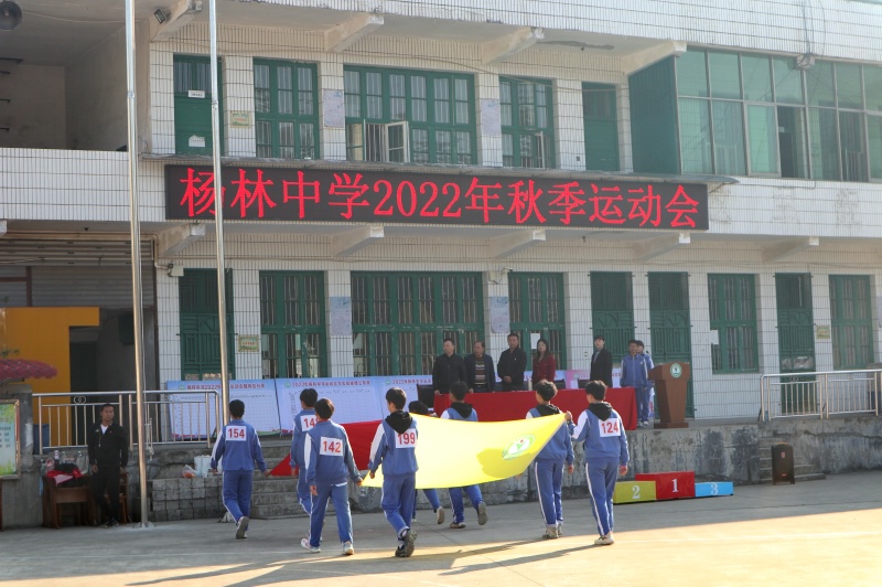 本网讯 10月12日,秋高气爽,艳阳高照,彩旗挥舞,群情激昂。杨林中学2022年秋季运动会在学校运动场开幕。 上午8点10分,入场式开始,国旗护卫队、校旗护卫队、彩旗队、裁判员队和各班代表队整齐列队指定地点。在庄严的《国歌》声中,五星红旗冉冉升起。裁判员和各班运动员迈着矫健的步伐,伴随着雄壮的《运动员进行曲》依次通过主席台前。 校长谌更生致开幕词。他指出:这次运动会是对学校体育教学工作的大检阅,更是对师生精神面貌和综合素质的大检阅。期望运动员奋勇拼搏、赛出风格、赛出水平;裁判员能认真负责,公平、公正;工作人员忠于职守、热情服务、保障安全;全体同学团结友爱、齐心协力、礼貌守纪。确保把本次运动会办成一个“安全、礼貌、和谐、拼搏、奋进、团结”令人难以忘怀的盛会。 裁判员代表戴鹂鹃老师和运动员代表唐鸣同学进行了宣誓。总裁判长政教主任王择政,宣读了比赛规则和有关注意事项。 据悉本次运动会为期三天,将举行400米、800米(女)、1000米(男)等11个个人项目比赛和拔河、50米迎面接力等5个集体项目比赛。