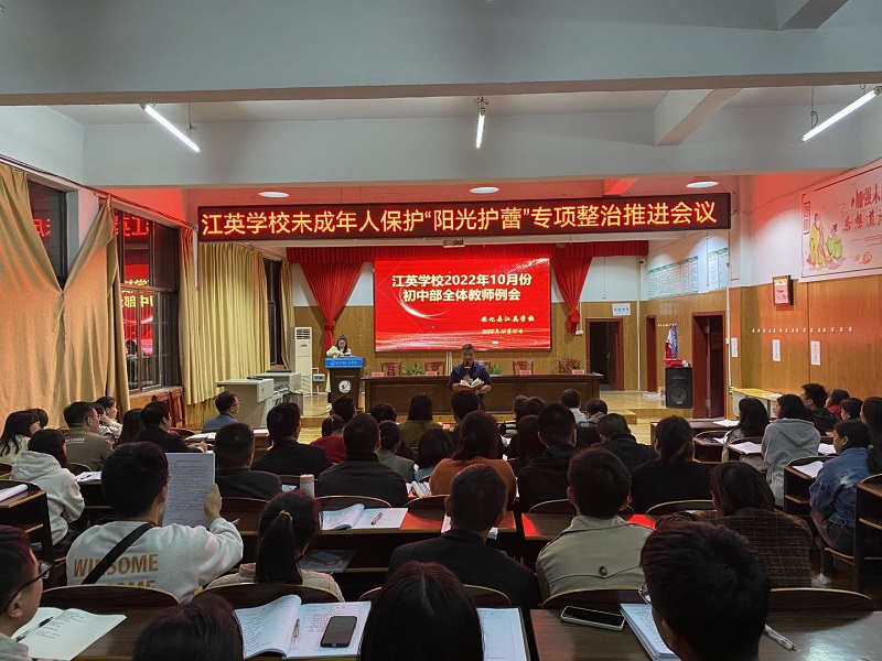 本网讯 10月10日下午,江英学校初中部100多名教师和部分家长在多功能报告厅组织召开了一次意义深远的“江英学校未成年人保护‘阳光护蕾’专项整治推进会议”。会议由教务处副主任胡平主持,学校校长姚喜临、初中部校长戴思妹、教科室主任刘伍红和学生处主任谭红霞参加了本次会议。 据胡平介绍,《阳光护蕾——湖南省中小学专题课》由湖南省教育厅、省高级人民法院、省公安厅以及芒果TV联合策划制作,以动画、专家访谈等形式,告诉学生应该正确认识并学会爱护自己的身体,在遇到性侵、欺凌等危险时应该如何及时正确处理,增强防范意识,保护自己不受侵害。老师和家长们根据各自的情况,进行了具体详尽的分析。 姚喜临等人就“阳光护蕾,家校共进”作了重要指示和安排,学校不仅要加强《阳光护蕾——湖南省中小学专题课》的学习,还要发动家长和孩子一起学习,通过家校联手、家校联动和家校合一的方式,更好地守护和保护好学生安全。 ![]()