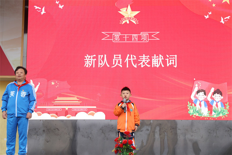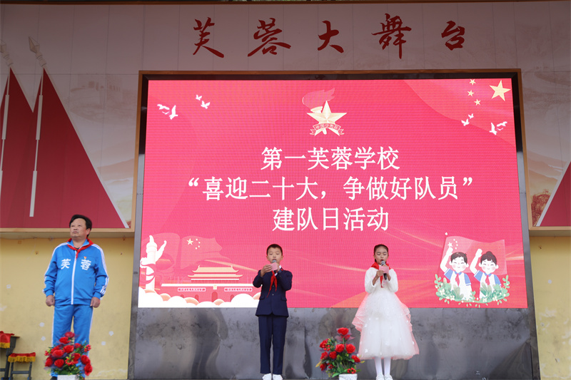 本网讯 10月10日,在中国少年先锋队成立73周年之际,安化县第一芙蓉学校在学校操场举行建队日活动,全校2200余名师生参加此次活动。 活动在嘹亮的队歌声中拉开了序幕,安化县第一芙蓉学校217名优秀的同学加入了中国少年先锋队这个大家庭,他们戴上了鲜艳的红领巾,对着队旗庄严宣誓,那一句句庄严的誓词,表达出他们时刻准备着,为共产主义事业而奋斗的坚定决心。 该校校长廖耀南为红领巾二星章获得者林博明及80名诚信学生颁奖并10个中队授中队旗,给10名校外辅导员颁发了聘书;大队辅导员谭啸宣读了新队员名单;党员教师及老队员为新队员系上了鲜艳的红领巾;新队员代表张哲宇进行了发言,他从少先队的由来、队旗的组成等方面为大家讲述了少先队的故事并号召大家要好好学习,将来要做祖国的栋梁之材。 通过此次活动,芙蓉学子们表达了自己的决心、坚定了自己的信念、展现了自己的风采。为以后的学习之路、生活之路奠定了基础,让星星之火能够代代相传。