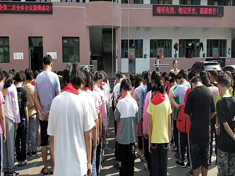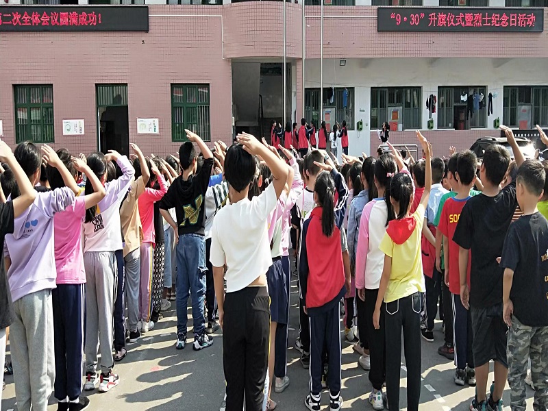 本网讯 9月30日上午,龙塘镇完小在大操场开展“缅怀先烈,砥砺前行”主题活动。由该校德育处主任李佳美主持,全体师生共同参与。