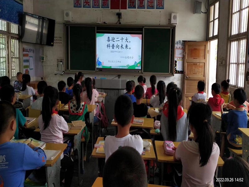本网讯 9月26日下午,江南镇陈王完小以“喜迎二十大,科普向未来”为主题开展了主题班会。