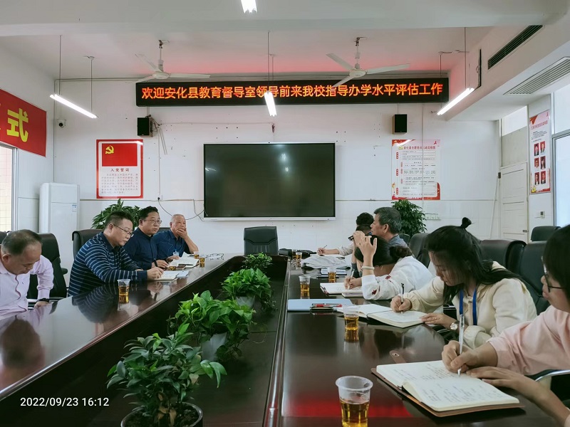 本网讯 9月23日,安化县人民政府教育督导室办公室主任袁世谦等一行三人,对江英学校的办学水平评估工作进行调研视导,该校党支部书记谢豪,驻校责任督学谌安云等行政领导陪同。 座谈会上,督查小组认真听取了该校小、初、高三个学部负责人的工作汇报,着重了解了江英高级中学(江英学校高中部)的办学情况,对这所“高起点谋划、高标准定位、高抓手推进、高站位突破”的新办学校表示了充分肯定;给予了这是一所“起点高、起步稳、开局好、亮点新”的民办普通高中学校评价。希望学校能够不断“提炼办学思想,凝练办学智慧”,继续打造好江英这块品牌,逐步将学校办成县内、市内、省内的一流高中。随后,督查小组成员分别就调研情况在会上作了反馈,针对发现的问题提出了建设性的意见。 谌安云代表江英学校发言致谢,感谢督导室对江英学校工作的肯定和指导,并希望与会的江英学校行政班子成员能够认真理解视导小组的评价和建议,把学校的各项工作继续做细、做实,跨越学校的发展高度,并认真对照评估细则整理好相应资料,以迎接本学期益阳市督导室对高中部的教学视导和县教育督导室对初中、小学的办学水平评估。