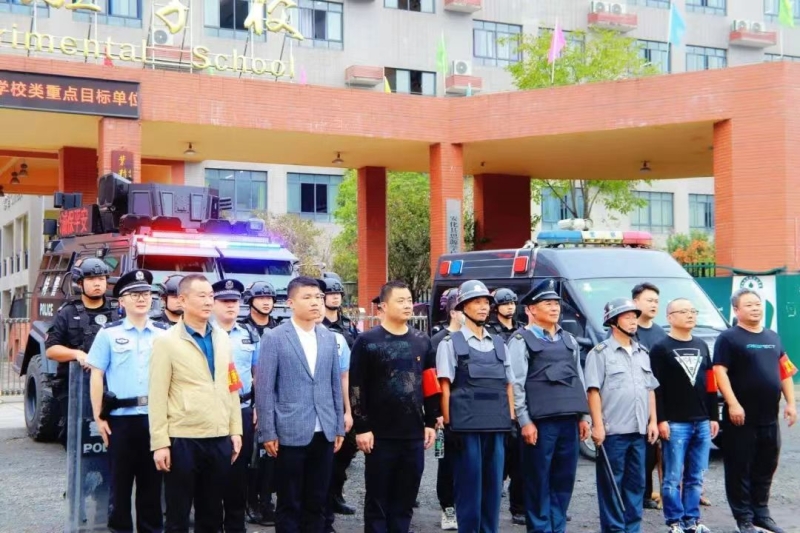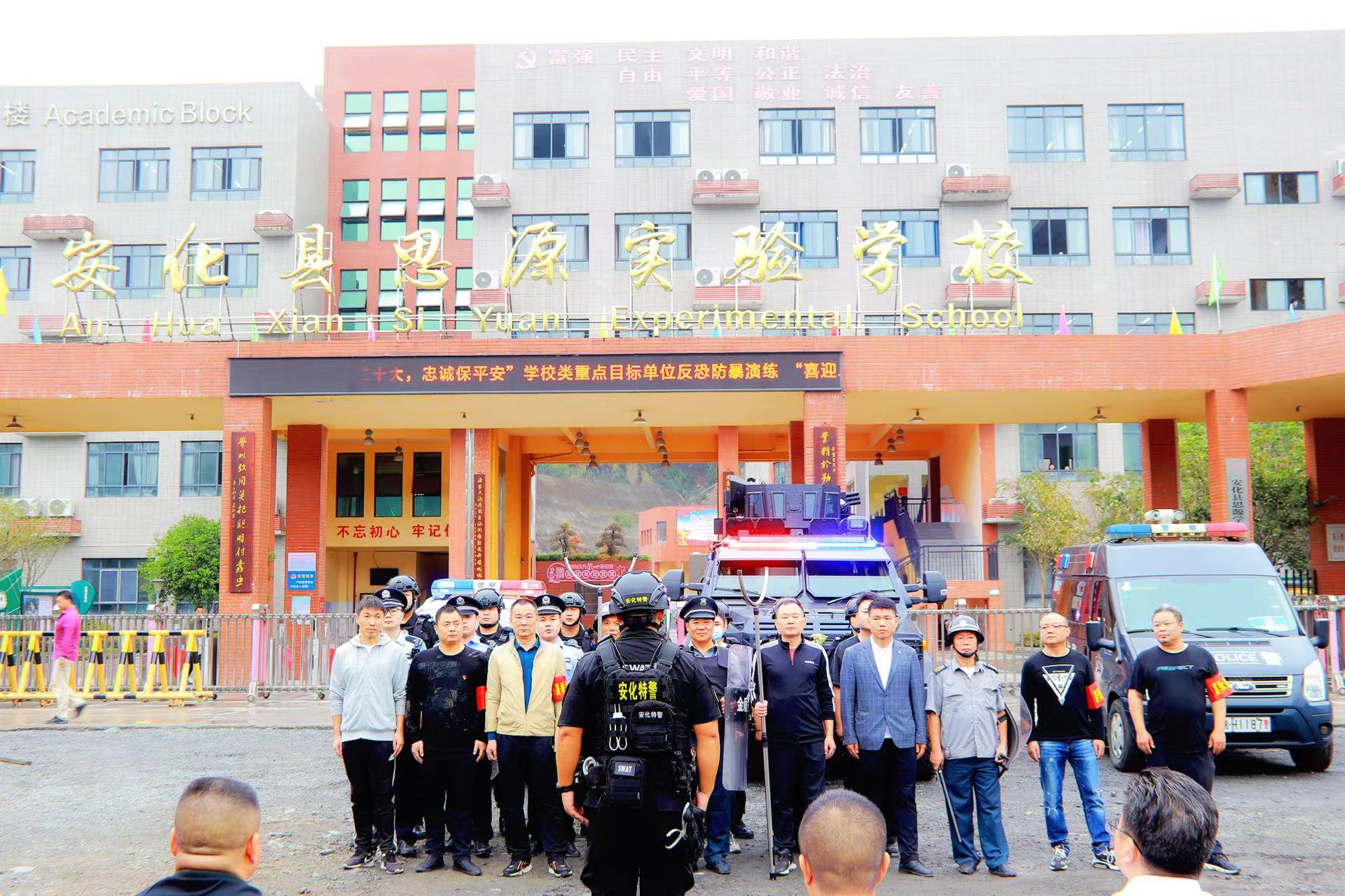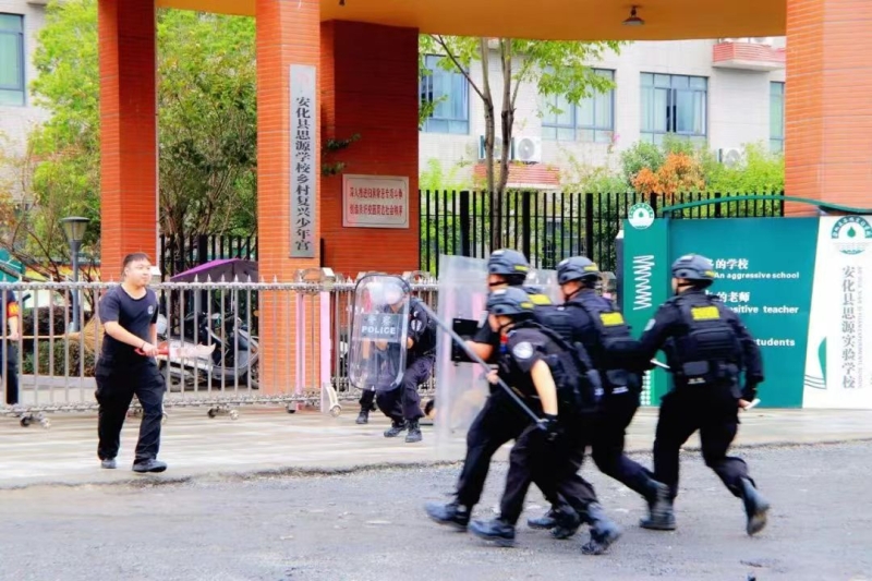 本网讯 9月23日,安化县公安局反恐大队、巡特警大队、城南派出所携手安化县教育局在思源实验学校开展了学校重点目标单位反恐防暴应急演练。 三名“歹徒”,企图强行进入校园,学校保安立即拉响警报,拨打报警电话,向派出所报警,并及时报告安全副校长李繁荣,李繁荣立即组织人员增援。学校保安人员持器械在校门口,与“歹徒”展开搏斗,与之周旋、交涉,想办法拖延时间,等待警察增援。警察及时赶到,与学校保安、教师齐心协力,制服“歹徒”并带离。 演习结束后,特警队员根据当前校园反恐防暴工作形势进行介绍,并通过现场教学,向参训教师、安保人员、护学岗执勤人员详细讲解了盾牌、钢叉等防暴器械的功能及使用方法。 县公安局党委委员、副局长刘健,县教育局安全管理股副主任伍秋来和东坪镇中心学校、思源学校相关负责人到现场观摩演练。 |