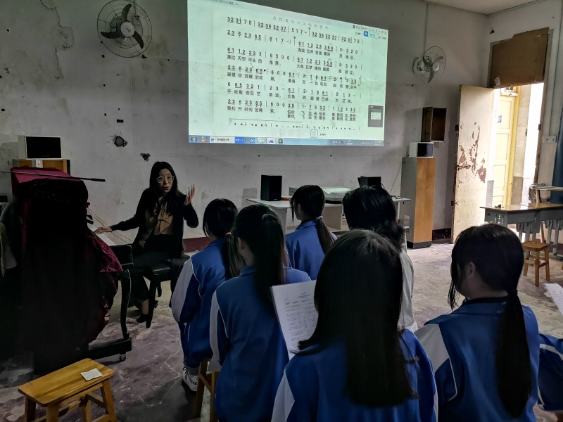 本网讯 长沙市麓山滨江实验学校一级声乐教师罗云笛老师,本期来到东坪镇杨林中学支教。她放弃留在县城学校支教的机会,毅然选择了条件最艰苦的农村薄弱学校—杨林中学。罗云笛长期任音乐特长班日常教学及声乐指导,所带班级合唱团及学校合唱团多次获得省市一、二等奖并获得优秀指导教师称号,多篇教学论文及教案获长沙市一、二等奖。 罗云笛到校后主动承担全校的音乐教学及音乐社团的辅导工作。为了给孩子们创造更好的学习条件,她把学校学生的旧宿舍改为音乐室,与学生一起搬柜子、整理器材、打扫卫生。为了便于教学,她自费购置了投影仪、音响等设备和音乐室的新窗帘,还计划为贫苦学生拉赞助。罗老师热爱乡村生活,更爱这些天真淳朴的乡里孩子,让他们能够享受到省城孩子一样的优质教学。支教助学,爱洒乡村!