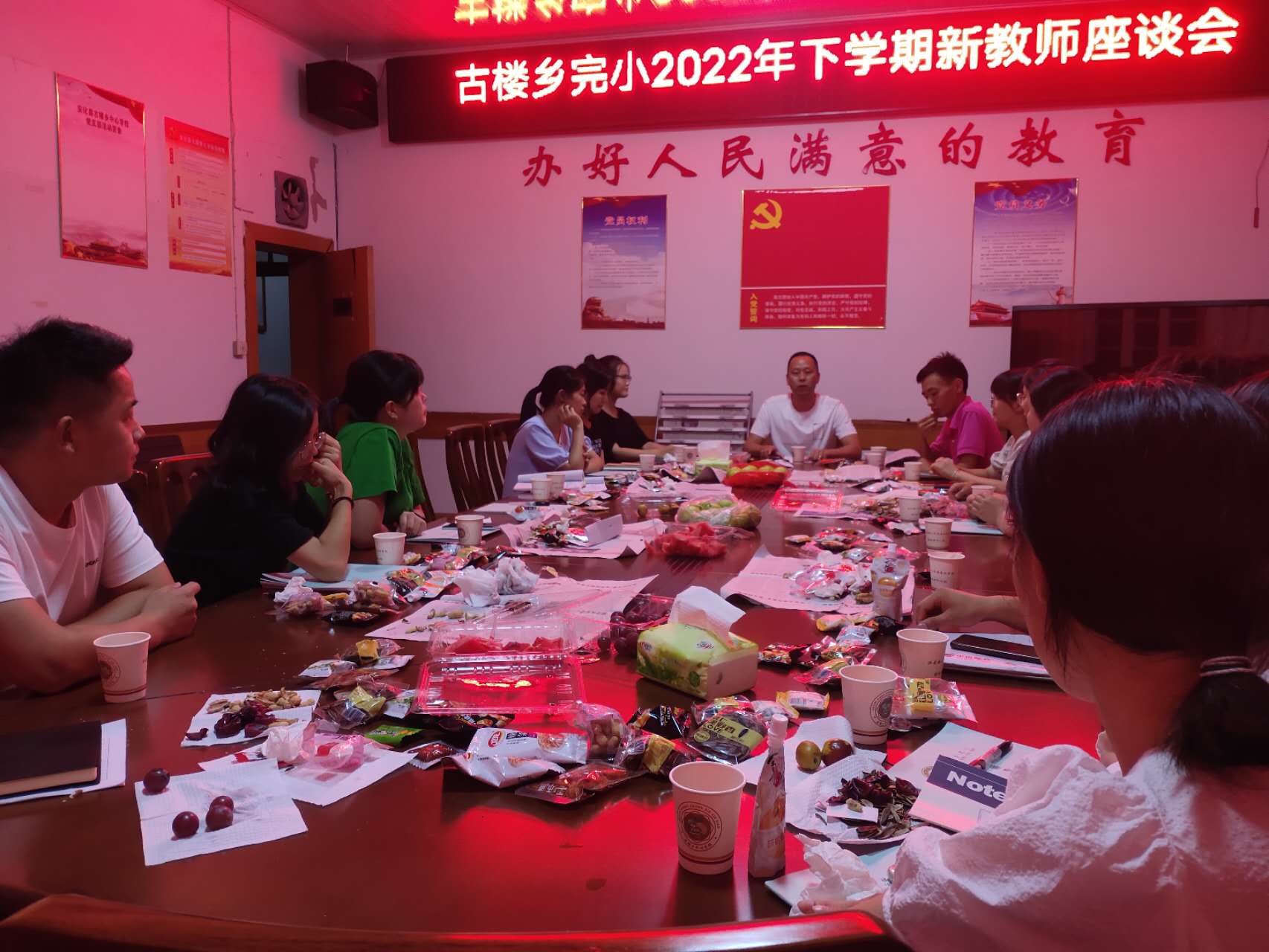 本网讯 9月20日晚,古楼乡完小举行2022年下学期新教师座谈会,会议由完小教导主任刘唐海主持,古楼乡中心学校校长尹立芳、完小校长刘刚、完小全体行政及15位新进教师参加了座谈会。 校长刘刚对加入古楼完小的新教师表示热烈欢迎和美好祝愿,希望新教师不断增强组织意识、服务意识、奉献意识、汇聚全体教师的力量,共筑和谐、文明、优秀的古楼乡完小。 新老师依次作了简单的自我介绍,并从工作、生活、思想等方面进行了发言,表达了内心的憧憬和期盼,展现了新教师昂扬向上的精神风貌和投身教育事业的决心志向。 尹立芳总结讲话,代表中心学校热烈欢迎15位新教师加入古楼完小团队。并从“做个有情怀的教育人”入手,谈到教书育人是一种谋生的职业,更是一份需要情怀去支撑的事业,希望新教师做一个有情怀、有梦想、有幸福感的老师。 |