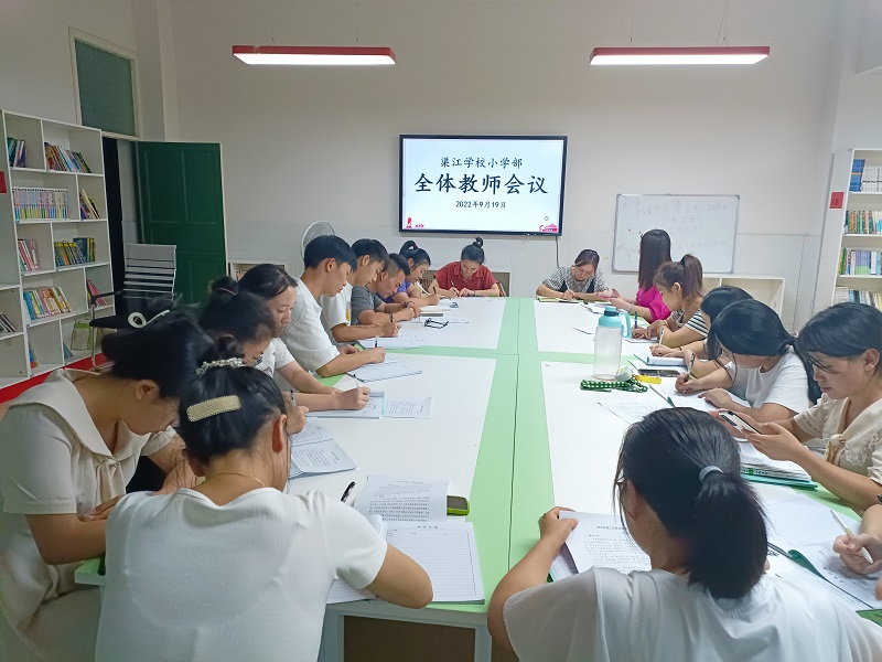 本网讯 9月19日晚上,渠江学校小学部在阅览室召开全体教师会议。会议由办公室主任禹曼主持。