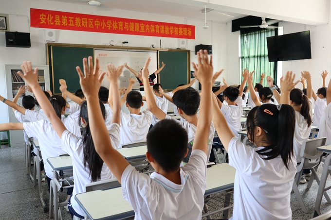 本网讯 9月16日,安化县第五教研区2022年中小学体育与健康室内教学初赛活动在东坪镇中学音乐室举行。来自滔溪镇、小淹镇、江南镇、田庄乡、东坪镇的五名体育教师参加了比赛。