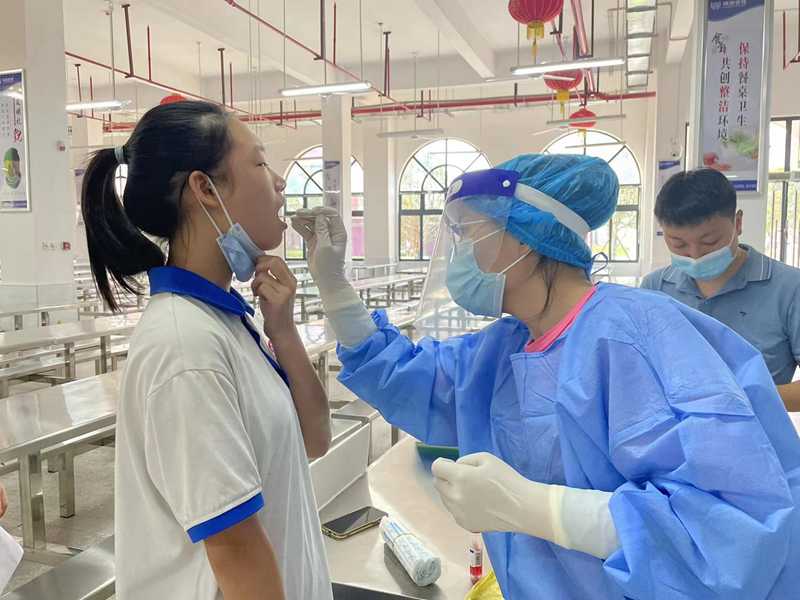 本网讯 9月14日,安化县紫薇中学在上级部门的要求下,开展了新一轮全校性核酸检测。 上午8点,医护人员来到紫薇中学进行核酸采集。该校全体师生、保安人员、食堂从业人员采取分区分时段的形式依次来到采样点,大家全程佩戴口罩,间隔一米有序排队,在工作人员的引导下,依次扫码、信息登记、进行核酸采样,整个过程高效迅速、有条不紊。该校学生表示:在学校进行核酸采样很方便,大家排队和采集都很有秩序,带上打印的健康码,几分钟就能采集完成回去上课,节省了去医院排队的时间。 据悉,此次全校性核酸检测覆盖面广、效率高,不到两小时,该校所有人员全部完成核酸采样。(通讯员 李晴)