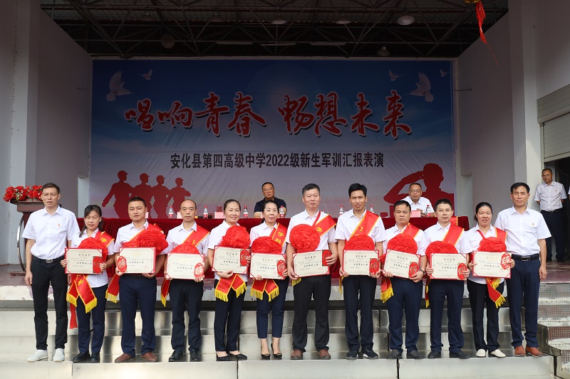 本网讯 9月10日上午,安化四中2022年下学期开学典礼暨庆祝第38个教师节表彰大会在学校田径场隆重举行,学校教育发展促进会理事长黄志军、学校主要领导以及全体师生与会。大会由学校党支部副书记、副校长雷鸣主持。 鲜红的五星红旗在全体师生庄严地注目礼下缓缓升起,慷慨激昂的国歌声环绕四中校园,拉开了开学典礼及教师节表彰大会的帷幕! 学生代表陈思慧致学生会欢迎词。首先对2022级学弟学妹们的到来表示了热烈的欢迎,并鼓励全体新生享受高中时光,奋勇拼搏,不留遗憾。她还代表学生会作出承诺,认真做好本职工作,贯彻落实服务精神! 教师节团委代表何聪作致辞。他深情地回忆了老师们的伏案钻研的备课日常,一言一语都流露出了对老师辛勤工作的崇高敬意与感恩之情! 高一新生代表周如意作致辞。她引用了苏格拉底“世上最快乐的事,莫过于为理想而奋斗”这一名言激励全体新生珍惜高中三年的青春年华,胸怀理想,破浪远航! 新教师代表丁雪芹作发言。她说,安化四中给予了她们一个实现理想、展现自我的舞台,在今后的工作中,全体新教师将不忘初心,恪守教书育人的本分,将一腔热血播撒在安化四中这片沃土! 学校副校长罗喜亮宣布表彰与奖励名单。罗安宁作为县级优秀教师分享获奖感言。他就教师的幸福感分享了自己的感受,教育的初心指引了前进的方向,学校的兴旺与发展是教师幸福的强大后盾,他还接连用了四个“由衷高兴”强调了学生的进步与成长是教师的幸福之源! 学校党支部书记、校长黄志刚作新学期讲话。他向全体新教师和高一新生表示了热烈的欢迎,回顾了学校近两年在全体四中人的凝心聚力下取得的优异成绩,充分肯定了全体教师的敬业乐业精神和全体学子不畏困难、勇攀高峰的毅力。他还向全体师生提出了新学期愿景,希望全体老师勇于担当,牢记为党育人、为国育才的使命;全体学子坚韧不拔,奋力书写人生的崭新篇章!(通讯员:罗竹芽)