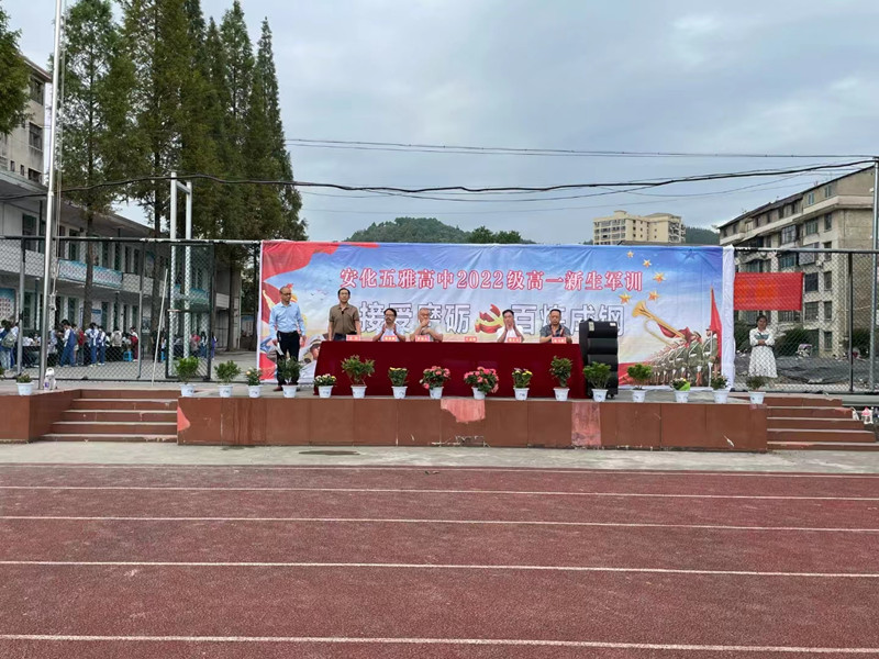 本网讯 9月1日至9月6日,安化五雅高中在“湖南铁森”13位教官的指导下,对高一636名新生进行了为期6天的军事训练。 此次军训包括站军姿、整齐报数、停止间转法、集合与解散、行进与停止、内务整理、军歌比赛、手语操、防震逃生演练、跑步、拉练等科目,教官指导认真,学员训练刻苦,一起顶骄阳、斗秋伏,取得了良好成效。 9月2日上午,教官指导学生进行自我救护训练;晚上,五雅集团总顾问范秋明作专题讲座:养浩然之气、呈鸿运之象,对学生进行理想前途教育。9月5日,组织学生进行远足拉练。9月6日下午,举行汇报表演,军训圆满结束。