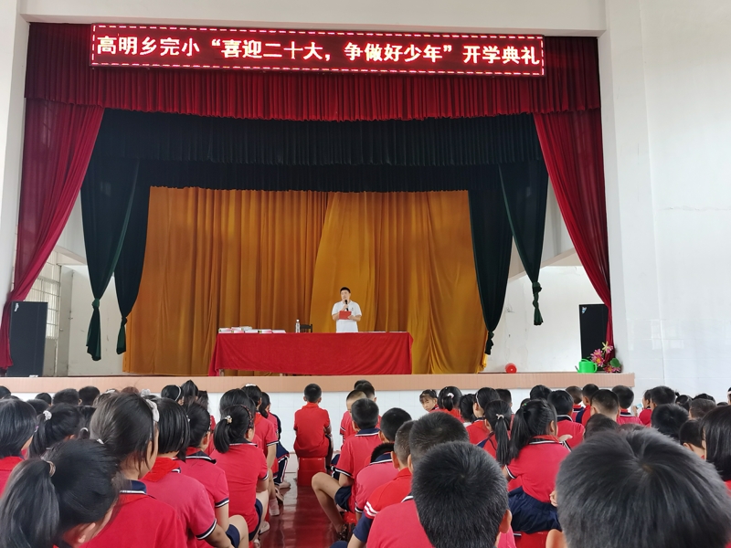本网讯 9月9日下午,高明乡完小举行了“喜迎二十大,争做好队员”开学典礼。本次开学典礼由教导主任何海容主持。 伴随着激昂的《义勇军进行曲》,五星红旗冉冉升起,同学们站姿挺拔,队礼端正,拉开了开学典礼的序幕。该校校长彭晓勇致辞,他对新老师和一年级的新同学表示热烈的欢迎,同时对该校的全体师生提出了新学期的期望:一是要求全体师生有责任、有担当,用实际行动,请党放心,强国有我;二是要求落实立德树人根本任务,牢固课堂阵地作用,抓实师德师风建设;三是要求青年教师苦练本领,汲取知识,增强才干;四是希望全体完小学子,立志向,存梦想,不负韶华,努力前行,用实际行动喜迎二十大,争做好队员。教师代表高芳发言,从她慷慨激昂的发言中,我们能深深感受到该校全体教师对教育的那份热爱。六年级79班的学生代表夏澳归也对新学期表了态,希望大家处处严格要求自己,在新学期取得更大的进步。 少年归来,扬帆远航;童心向党,共谱华章!该校全体师生,必将紧密团结起来,以勇敢和顽强的精神,迎接新学期的挑战!让我们携起手来,齐心协力,在党的二十大精神鼓舞下,努力进取,再创辉煌!(通讯员