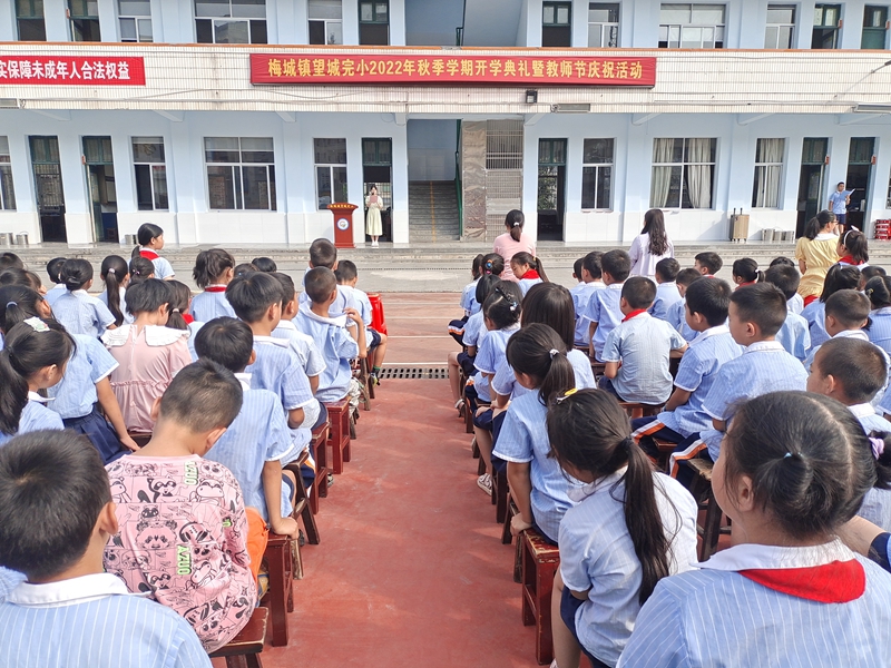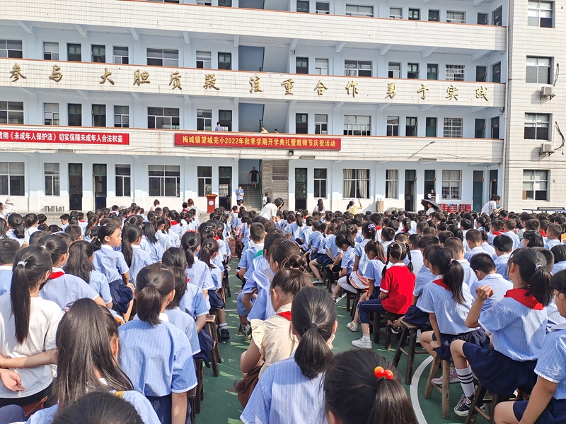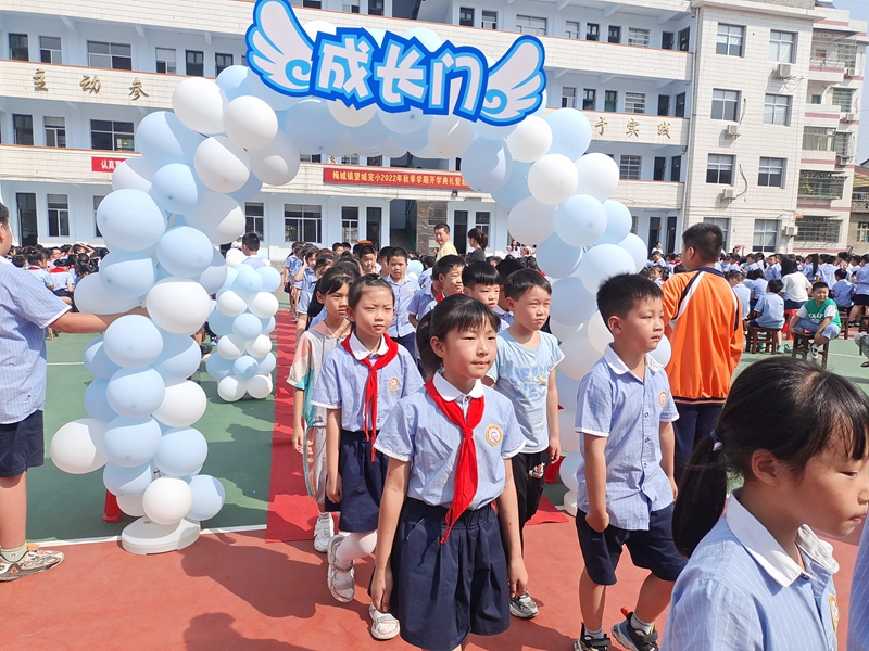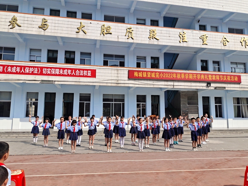 本网讯 金秋时节,硕果飘香,秋风再起,吹拂着跳动的心房。9月9日上午,梅城镇望城完小全体师生们欢聚在学校操场,举行了仪式感满满的新学期的开学典礼。 在嘹亮的国歌声中,全体师生肃然起敬,望着鲜艳的五星红旗,心中涌起了无限的骄傲与自豪。新教师代表姚雨帆发言,“心怀梦想,付诸行动,持之以恒,终将梦想成真”这是老师的前进方向。 随后是一年级学生的“开蒙礼”,共三项:一是正衣冠,一年级的同学们自己整理一下衣服,老师为学生整理一下衣服。二是行拜师礼,一年级同学向老师鞠躬,老师鞠躬回礼。庄重的鞠躬礼,是对老师无限的尊敬与感谢,老师的深深回礼,是对孩子许下的郑重承诺。三是朱砂启智。一年级老师为本班新生点朱砂,称为“开天眼”,意思为开启智慧,从此眼亮,好读书,读好书。希望一年级学生记住此刻,尊敬师长,用功读书,努力学习,发奋向上。副校长郭世佳为新生班级授予班牌。一年级32班新生刘舒雨代表全体新生表了决心,希望同学们以哥哥姐姐们为榜样,处处严格要求自己,在新学期取得新的进步。 教导主任董鸿亮对上学期工作进行总结并颁奖。董鸿亮对上学期各方面表现突出的学生进行了表彰大会奖励。五年级20班同学为大家带来手势舞《有你就幸福》。校长李兴家向全校师生提出了新学期的要求和希望。之后李兴家带领学生击鼓鸣志,表达他们要读书上进和报效祖国的愿望。大会最后一项,全体学生分班过成长门。过了成长门,寓意着在新的学年里,收获新的成长和喜悦。成长是充实的,收获是喜悦的。望城完小全体师生在新的学年里,扬帆起航,再出发! “良好的开端等于成功了一半”,本次开学典礼激励了全体同学在新学期中播种好习惯,全身心地投入到学习和生活中。相信,在全体师生不懈的努力下,望城完小一定会赢得更加灿烂辉煌的明天。(通讯员 李咏如)