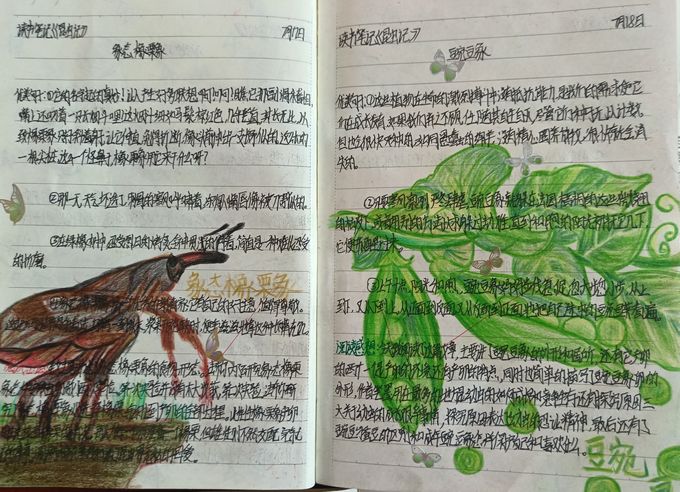 本网讯 9月9日课余时间,江南镇中学学生陆陆续续来到教学楼三楼小会议室,观看“放下手机,爱上阅读”优秀读书笔记展览。 品味书香润心灵,阅读经典逐梦想。该校语文教研组组长李江乔在展览中,不断地为学生解说,点评着读书笔记,“2105班刘伯乐的读书笔记很有特色,你看他读《昆虫记》,每读一文,就描画出其形状。值得效仿推广。”“2005班刘奥琳阅读《红星照耀中国》,她的阅读感想写得比较深刻。”“本文标题设置悬念,引人入胜,以‘手’为线索,一个平凡而崇高的劳动者形象跃然纸上,平易朴实。这是2005班王蕊品读赵树理《套不住的手》时的感悟。”“保尔逐渐改掉了毛病,变得坚定起来,成为了‘钢铁’。我也要像他一样,树立理想,为之奋斗,不能碌碌无为。”李江乔停顿一下,接着说:“这是经典阅读中的精神升华。我们就要这样,在书香浸润中,放飞心灵。”……同学们一边回味着老师的话语,一边品味着笔记的美妙。 “有的说有时读书入迷忘记了吃饭;有的说从《海底两万里》领略到了科学的伟大和幻想的魅力;有的说要像失去光明的海伦·凯勒、刻‘早’字的鲁迅先生一样,去爱上阅读。”该校象形山文学社社长、语文教师陈子敬,在聊起同学们分享读书故事时,微笑着向笔者介绍,“老师们要引导学生,读好书,好读书,在书香的滋润中追逐梦想。” 据悉,以封面封底、笔记内容、书写、字迹、版式、数量和感受等七个维度进行评选,在班级初选后,再每班交五份到学校进行复评,每个年级分别评选出一等奖三名、二等奖五名、三等奖七名,并颁发了荣誉证书和发放了奖品。(通讯员 陶志远)
